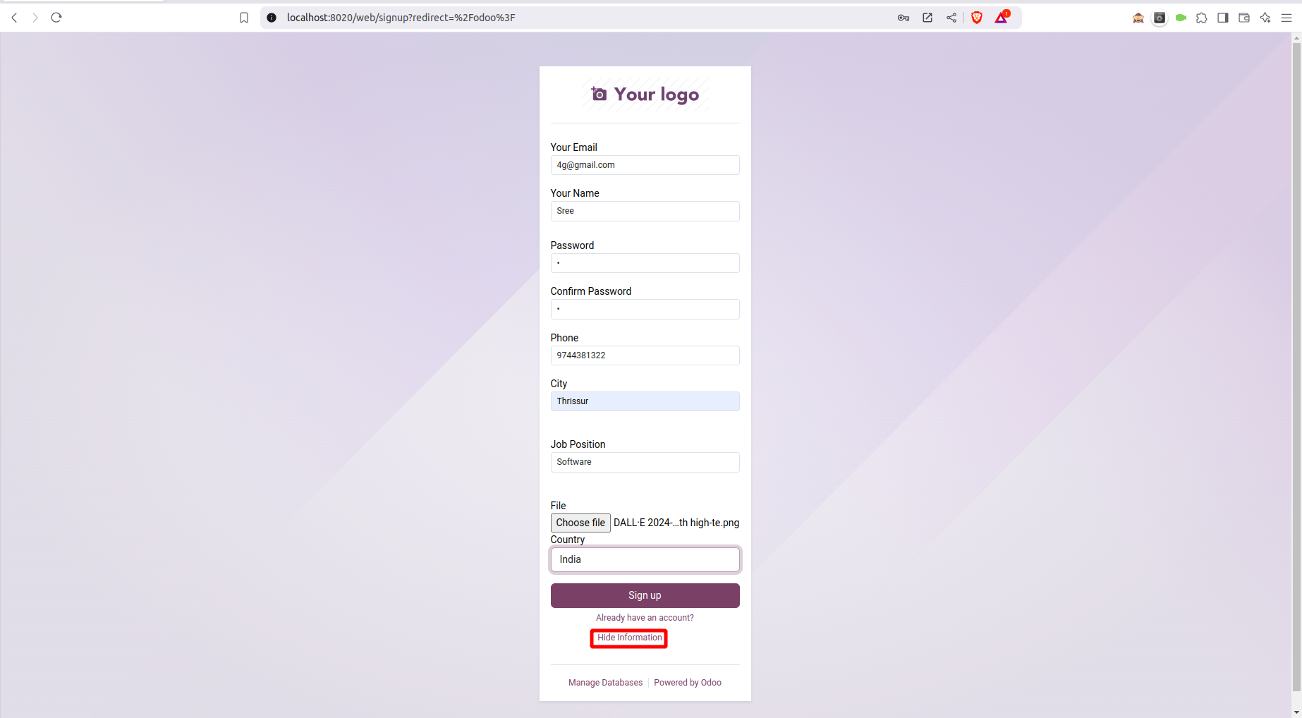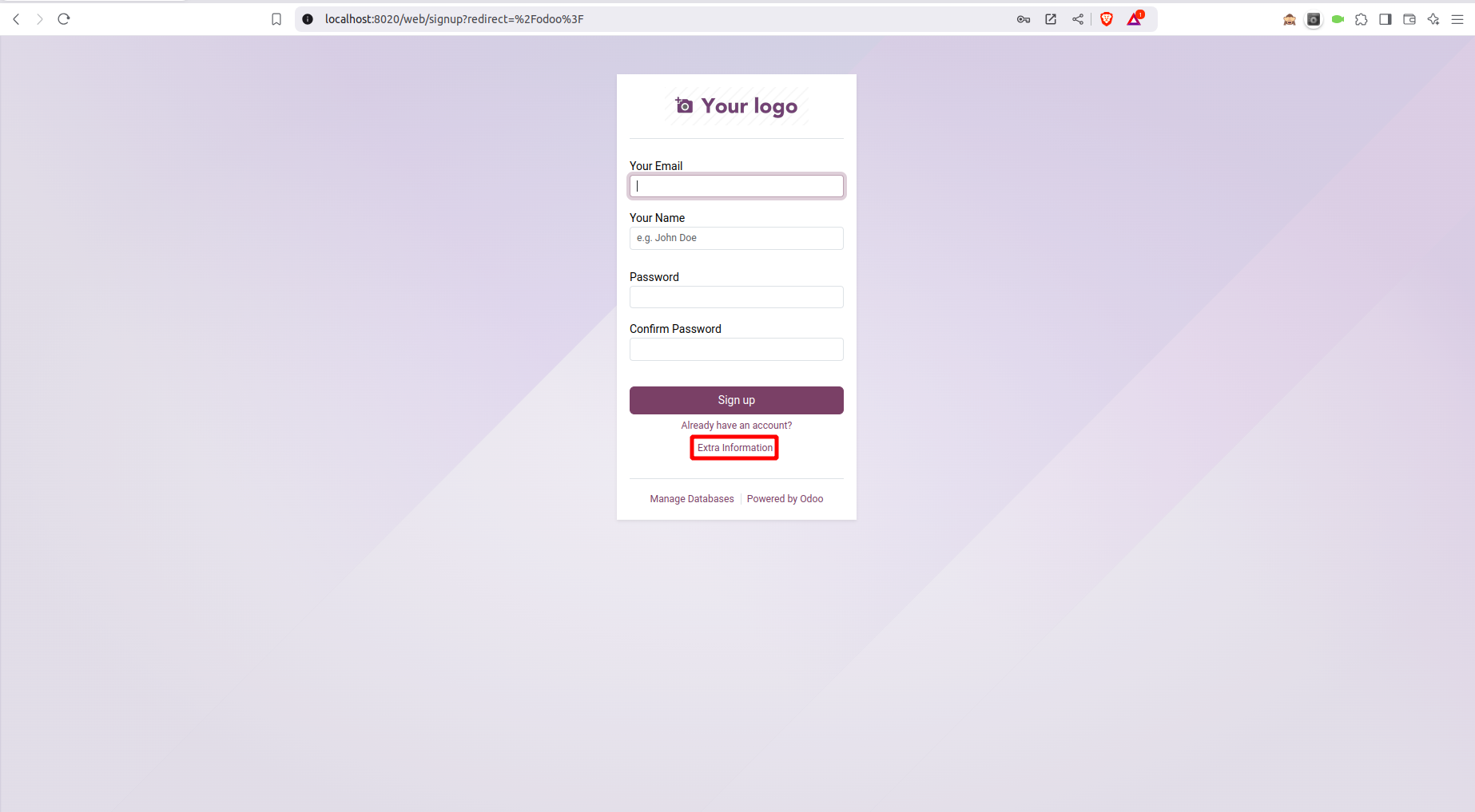 This odoo app is helpful if you need to customize the signup page with extra information.