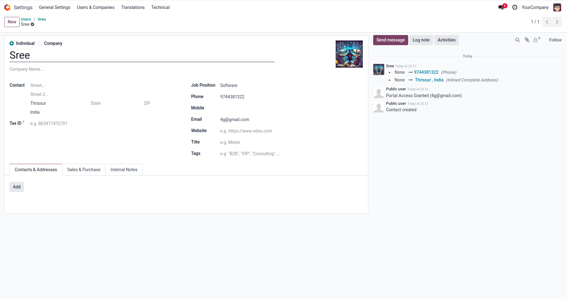 The extra information entered during signup is automatically linked and stored inside the corresponding partner record associated with the new user.