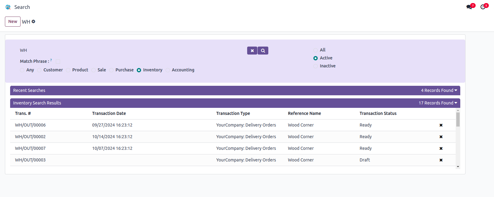 Effortless Search for Customers, Products, Sales, Purchase, Inventory and Accounting modules records.