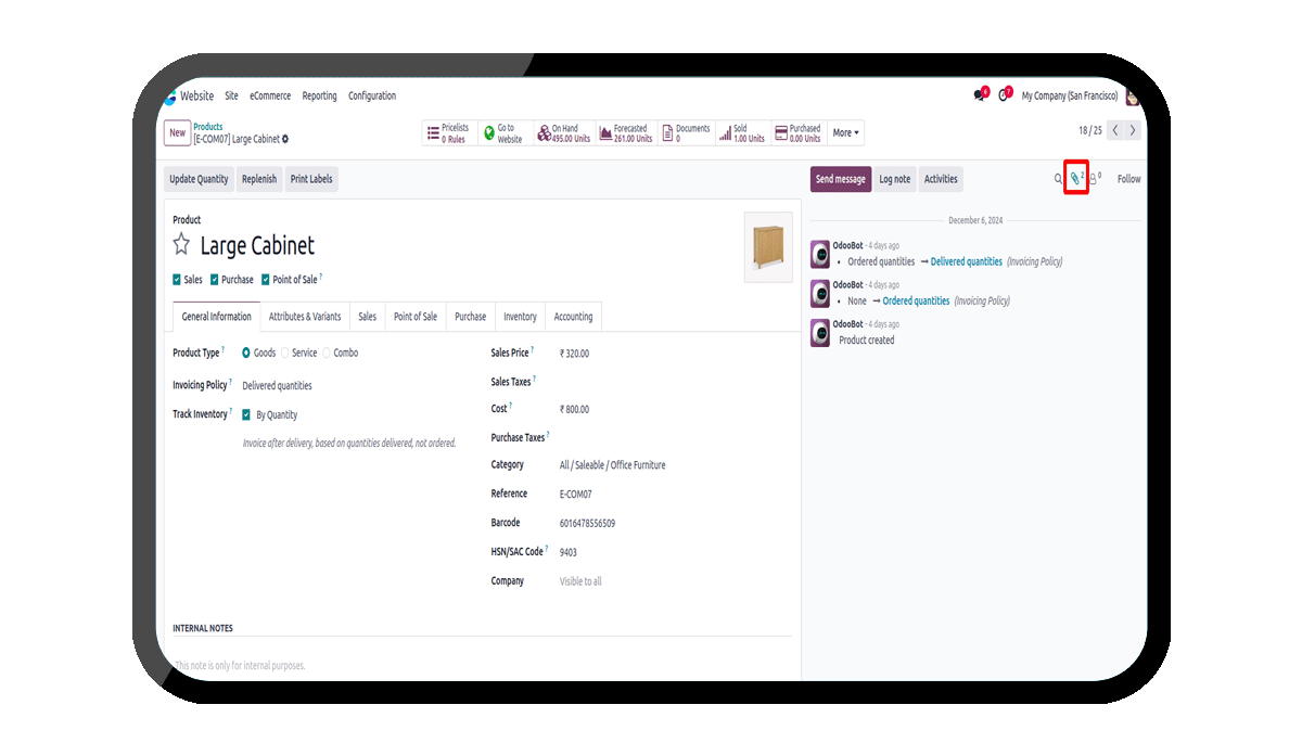 Attach your documents like, product specification on product master.