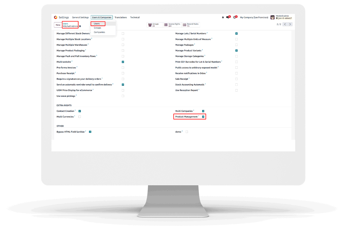 Settings -> Users -> Turn on Product Management