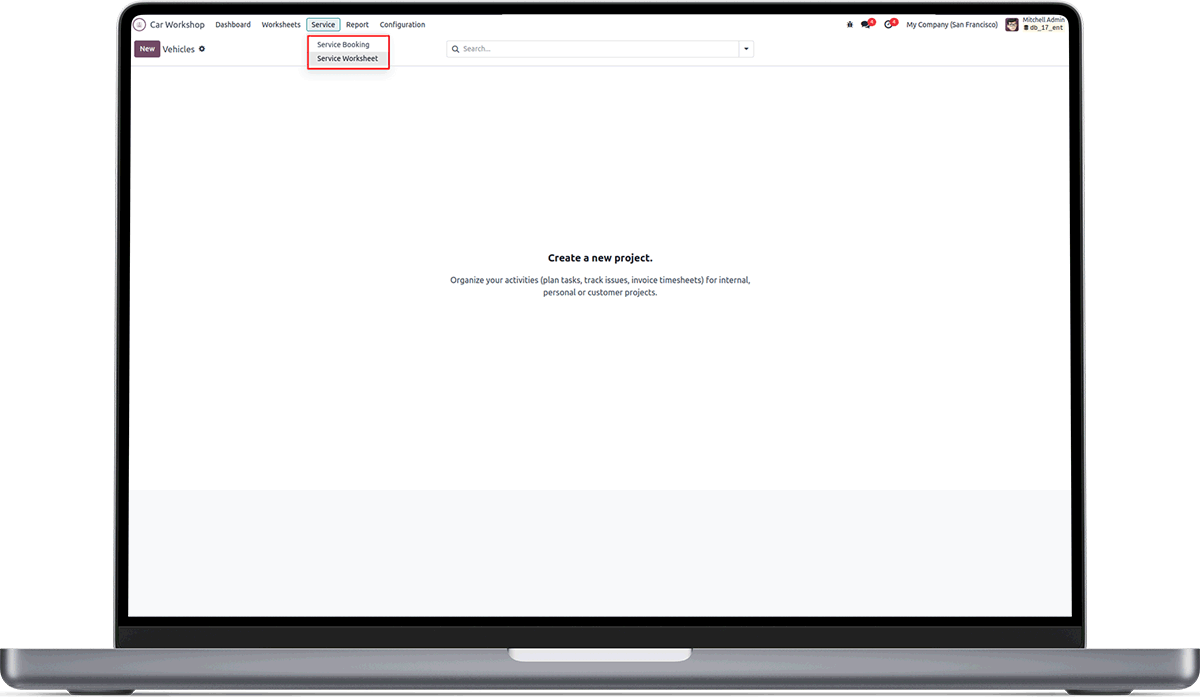 Added a menu to the Car Workshop module to handle bookings and data on the corresponding worksheet.