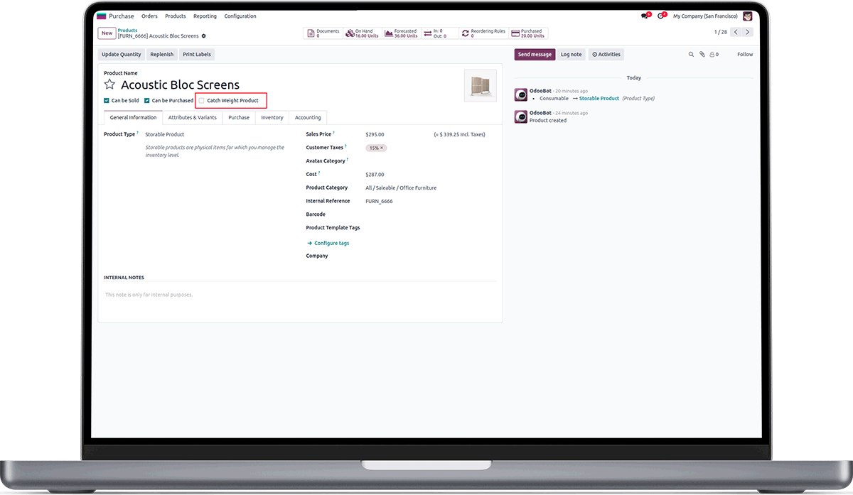 We can click on the checkbox "Catch Weight Product" to Enable The Catch weight on the selected product.