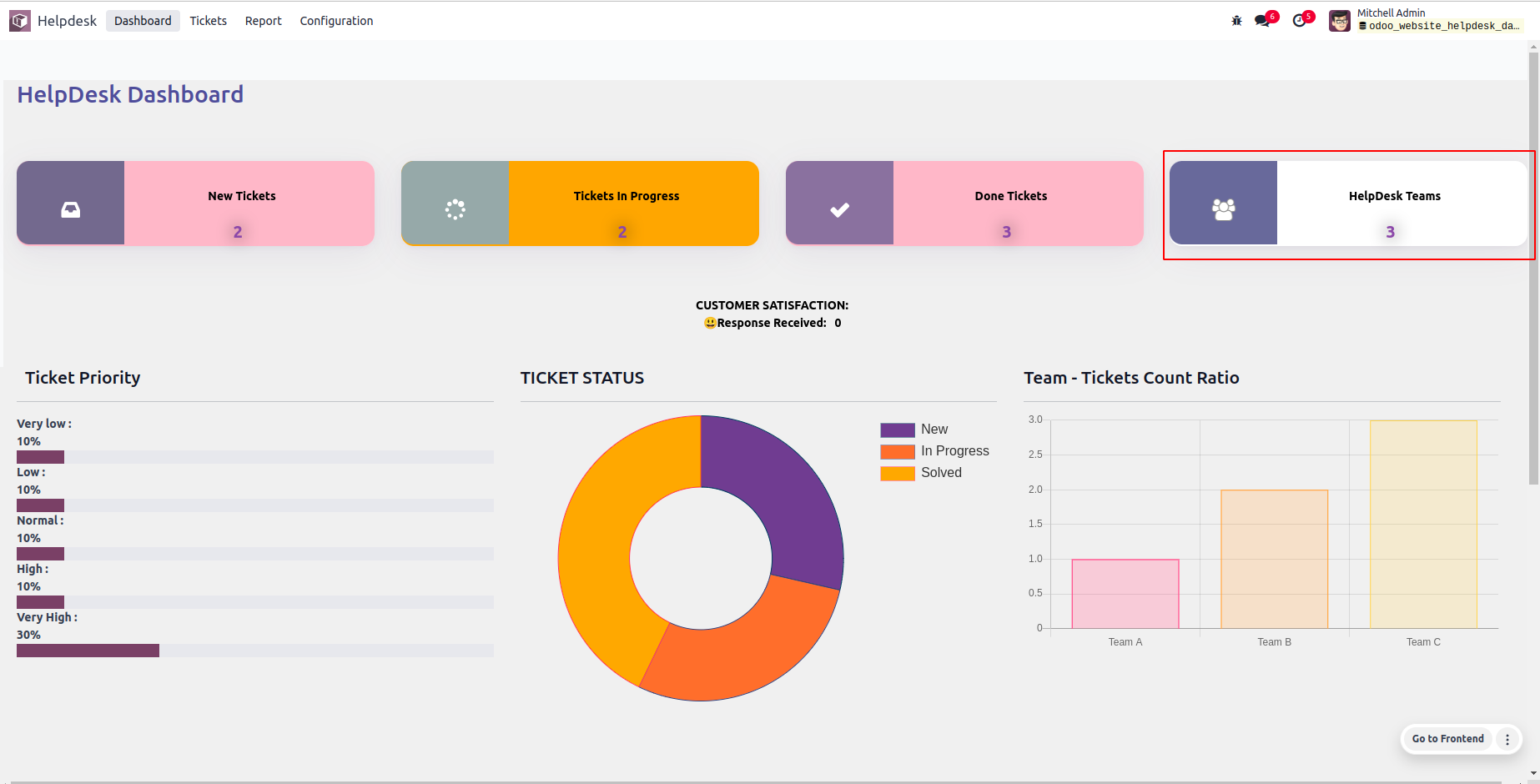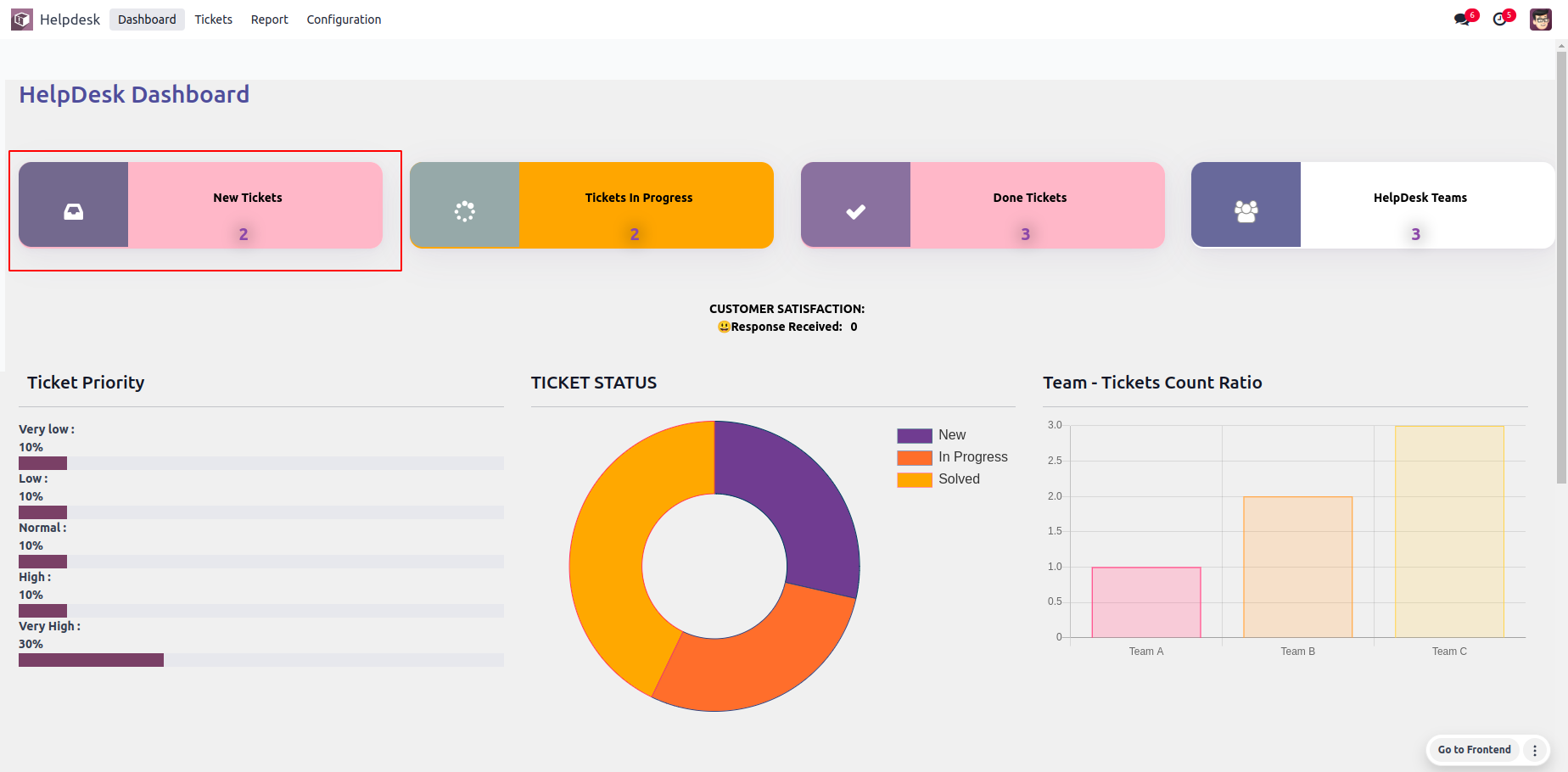 • View status of tickets in the Doughnut Chart.