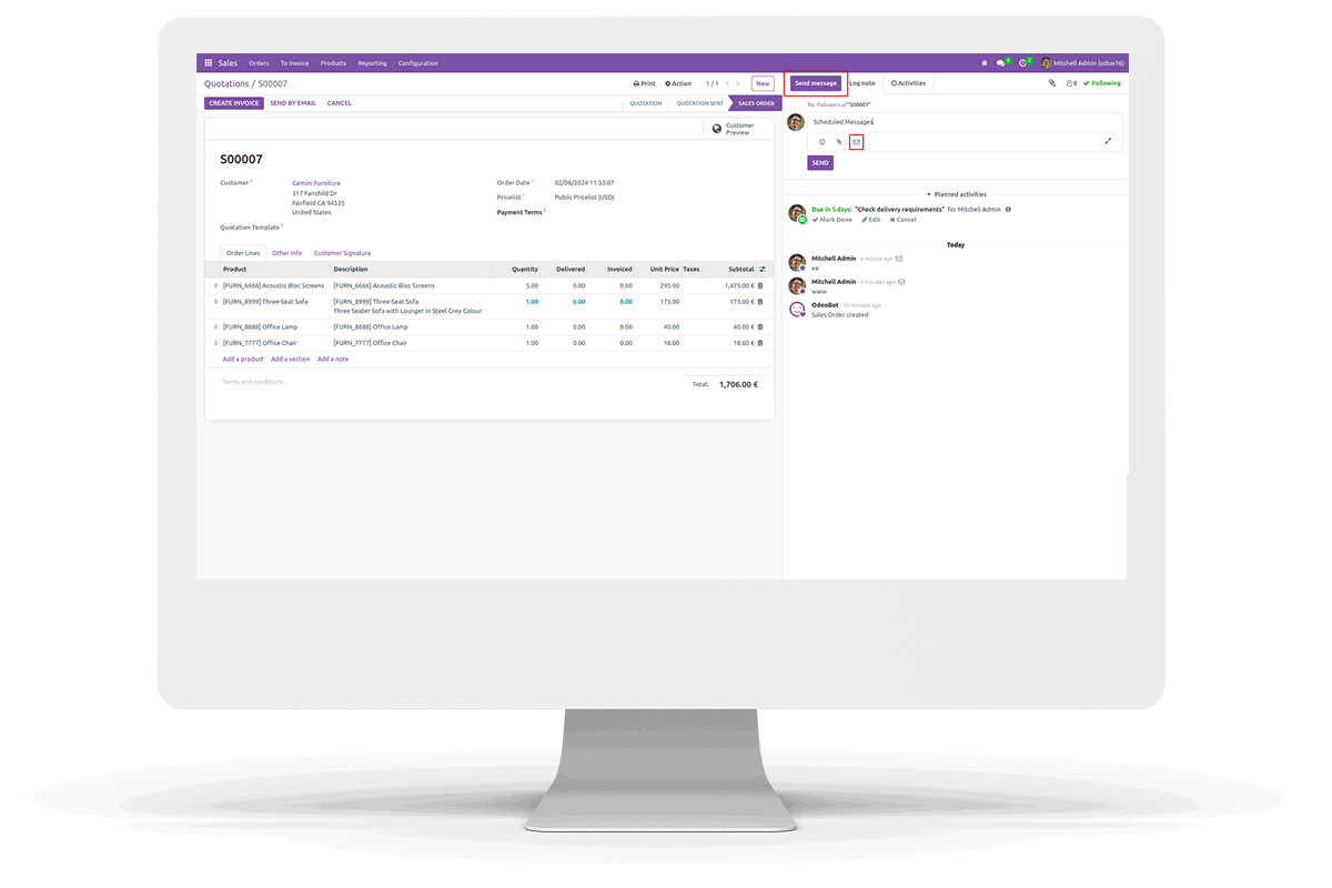 In this module, we are able to schedule log notes and send messages through chatter.