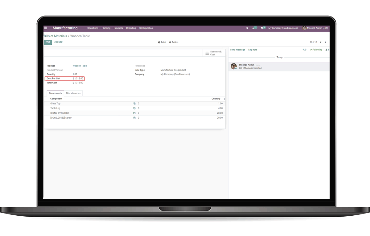 This module helps to show the total cost per unit based on the components cost.
