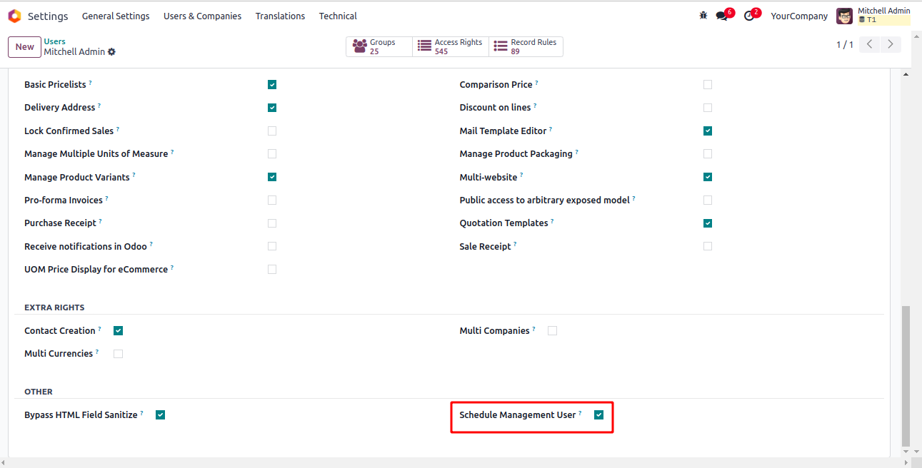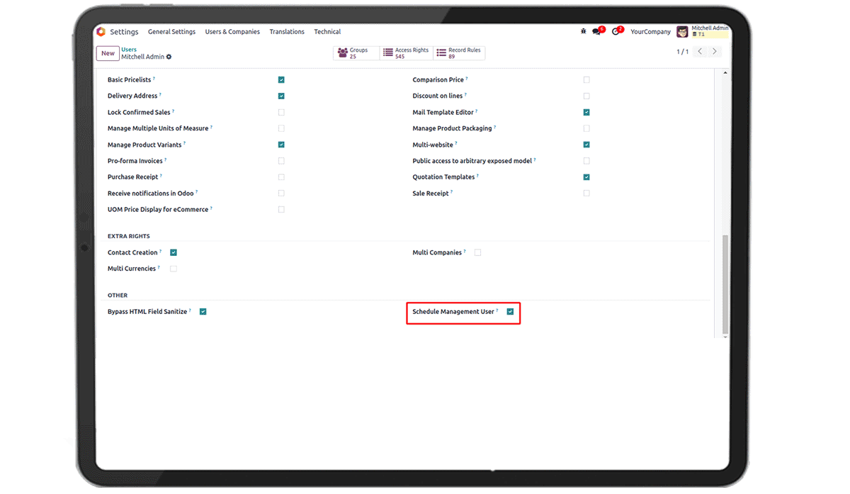 In the settings menu, under the 'User' section, you will find the option 'Schedule Management User.' Enabling this option grants the user the role of schedule manager, allowing them to view and manage all activities across the system.