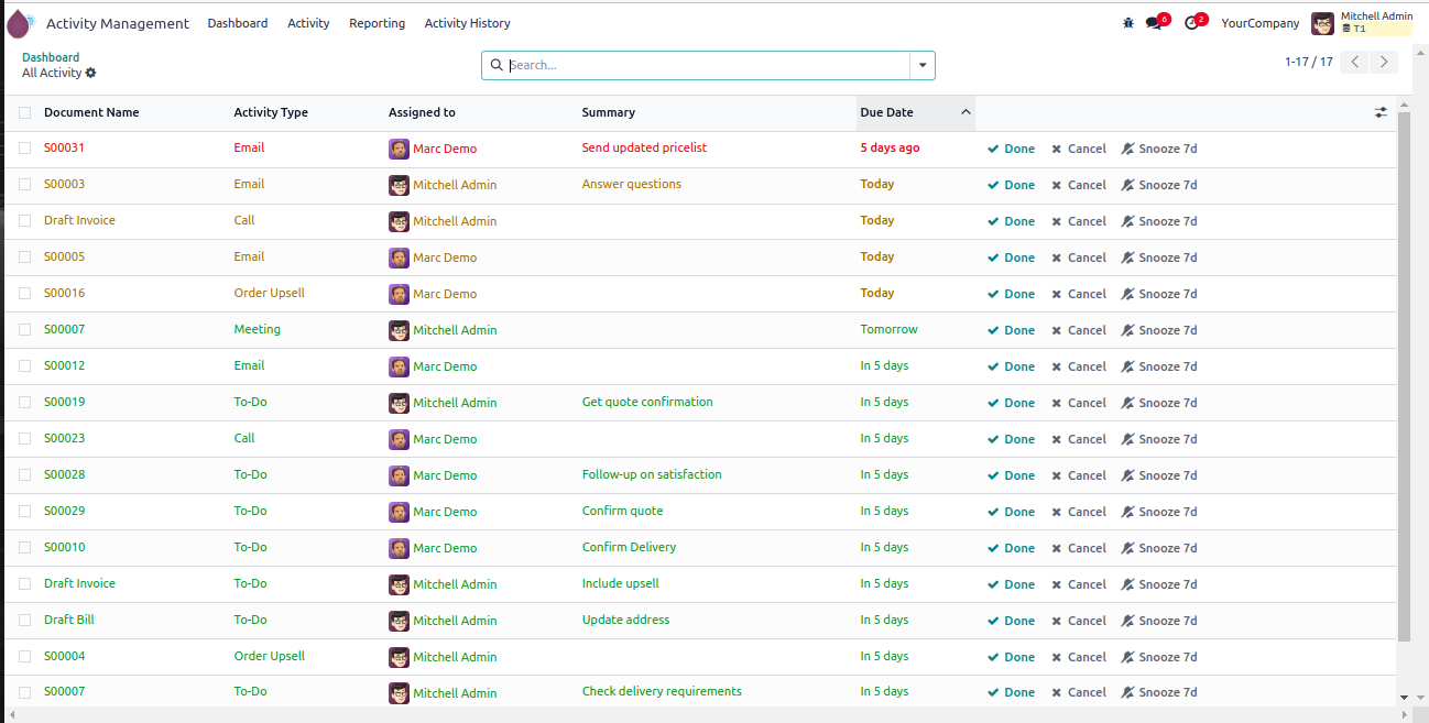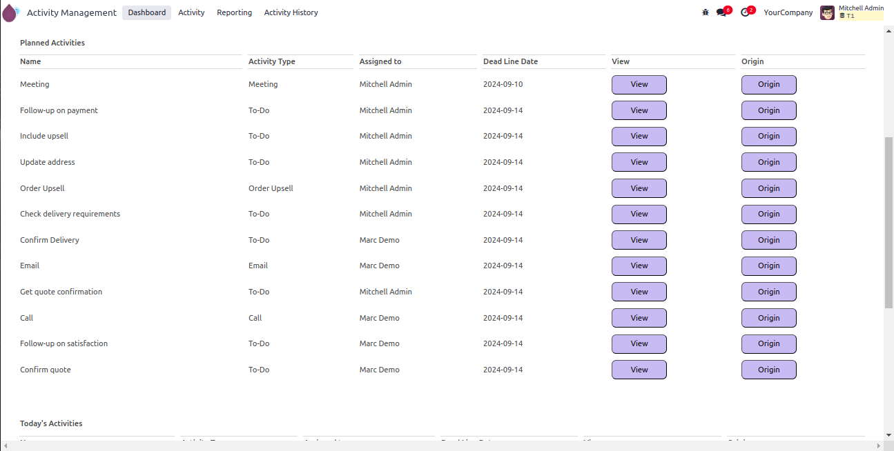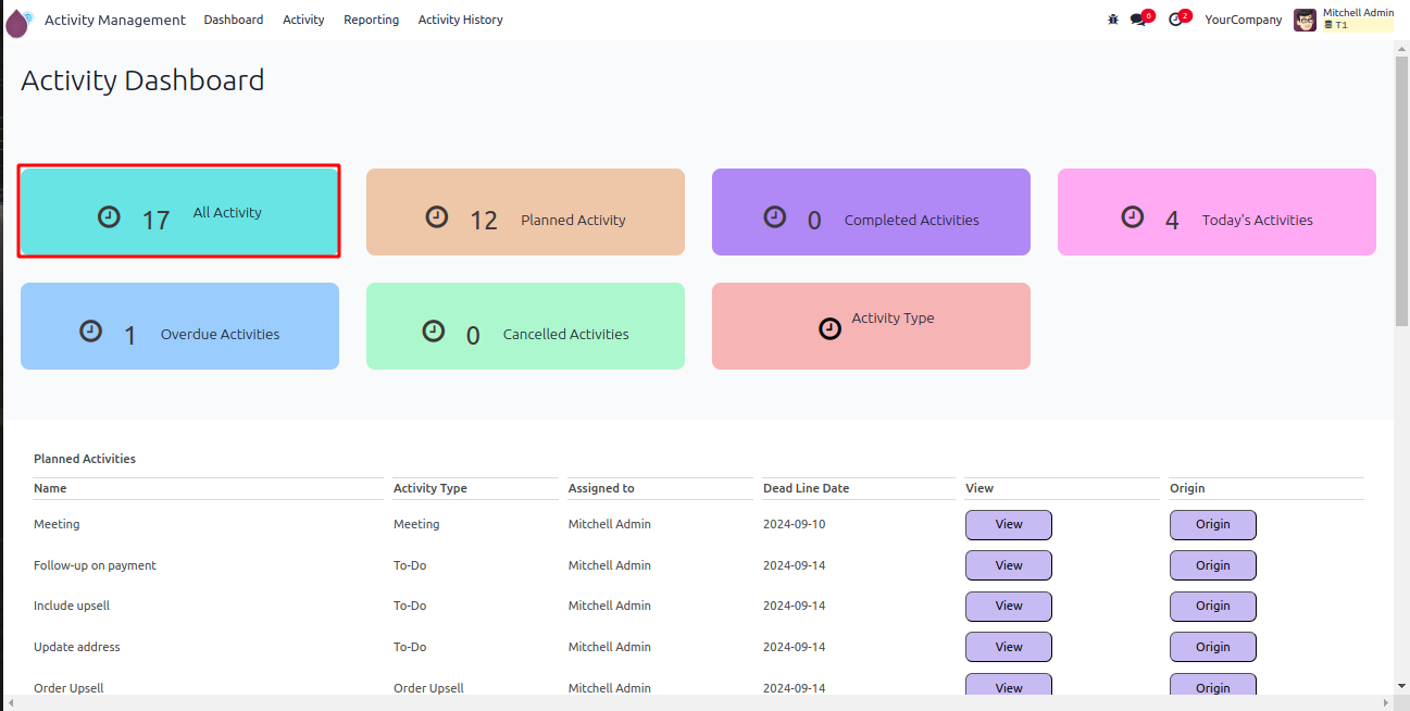 All activity list.While clicking on the dashboard all activity card it will redirect to all activity window.