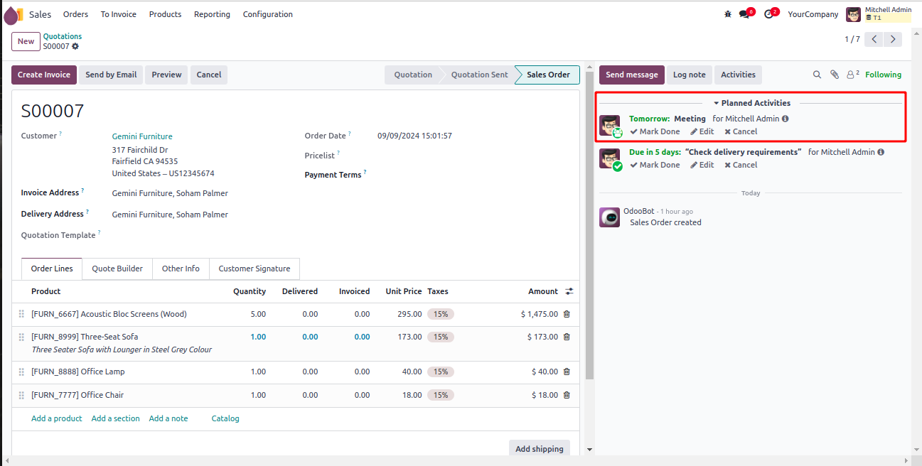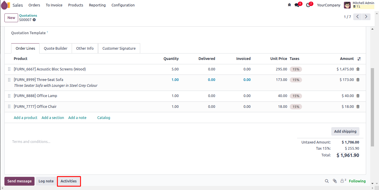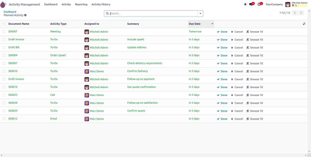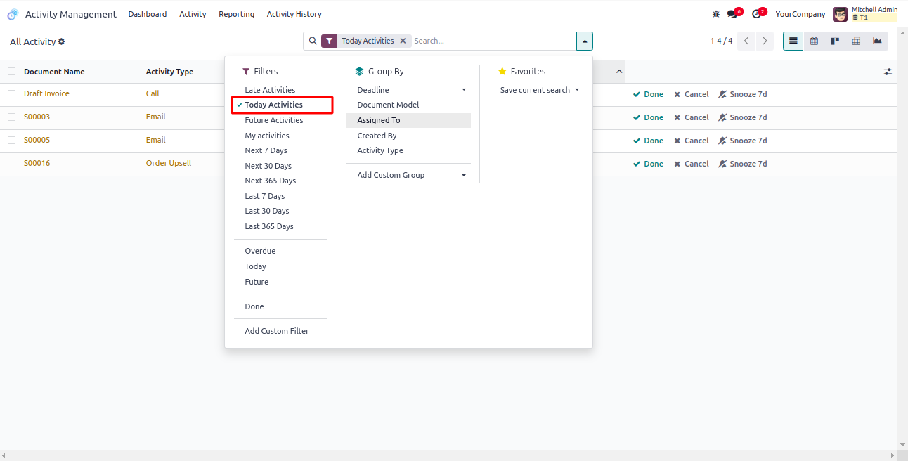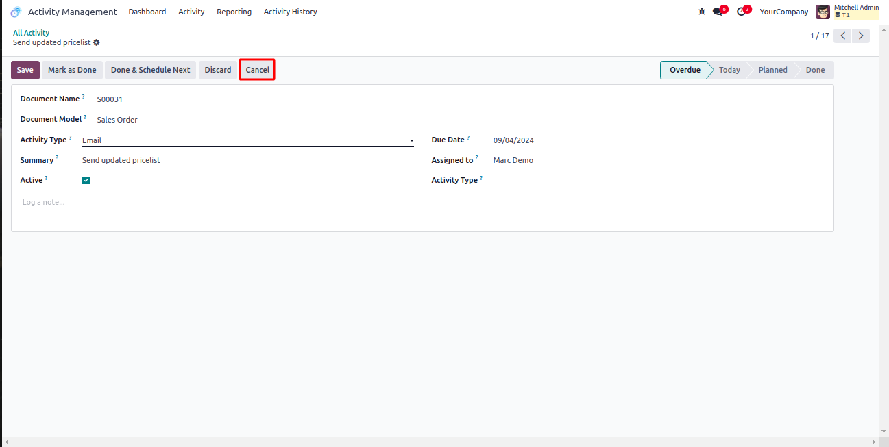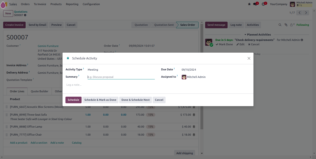 On clicking the button "Activities", a popup appears where we can create and schedule activities.