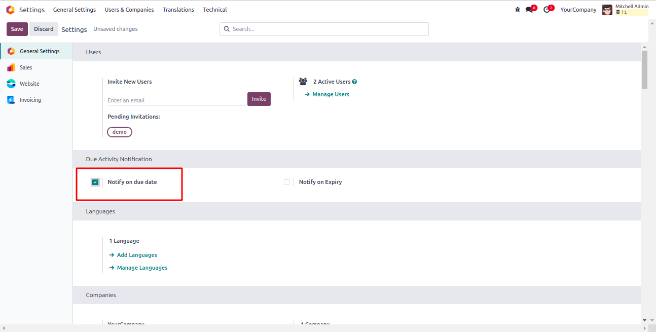 From the settings enable Notify on expiry, once the due date is expired, the customer will receive an email.