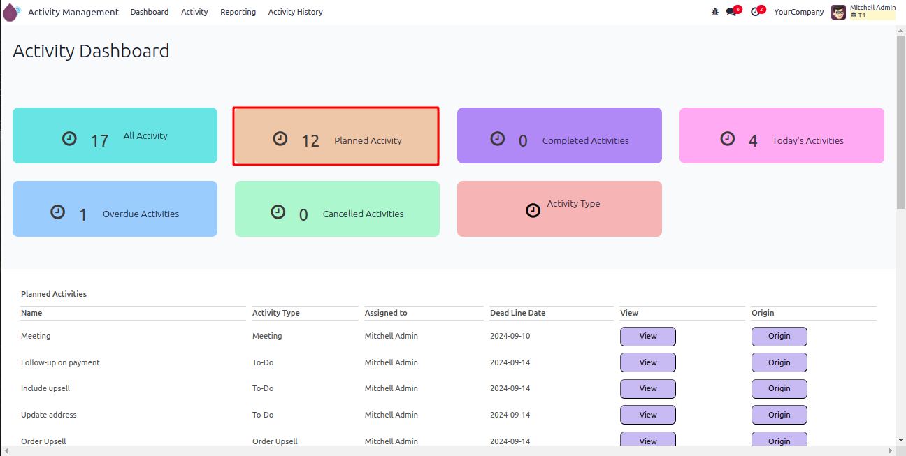 While clicking on the dashboard planned activity card it will redirect to planned activity window.