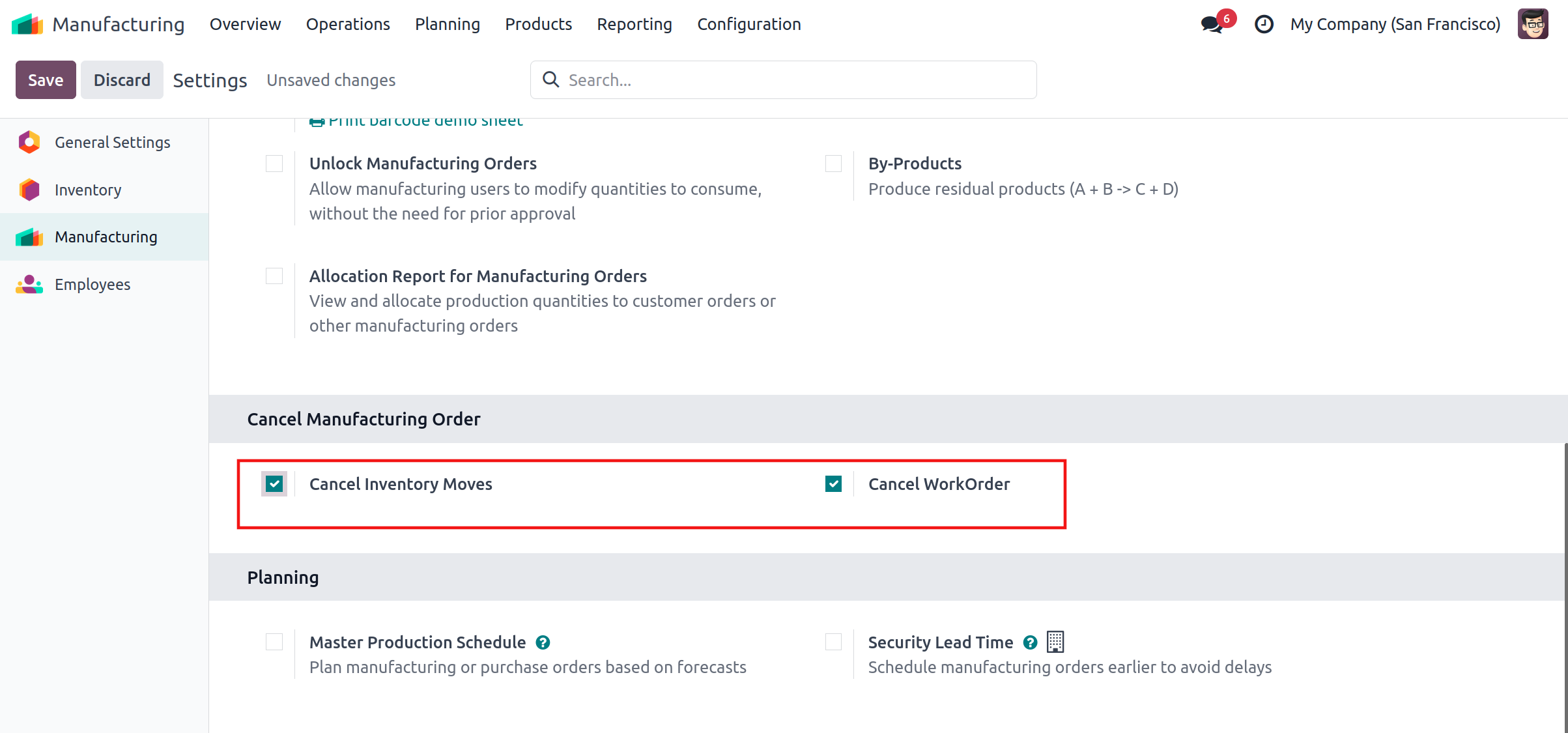 Yes.Open configuration->settings under the manufacturing and enable 'Cancel WorkOrder' only