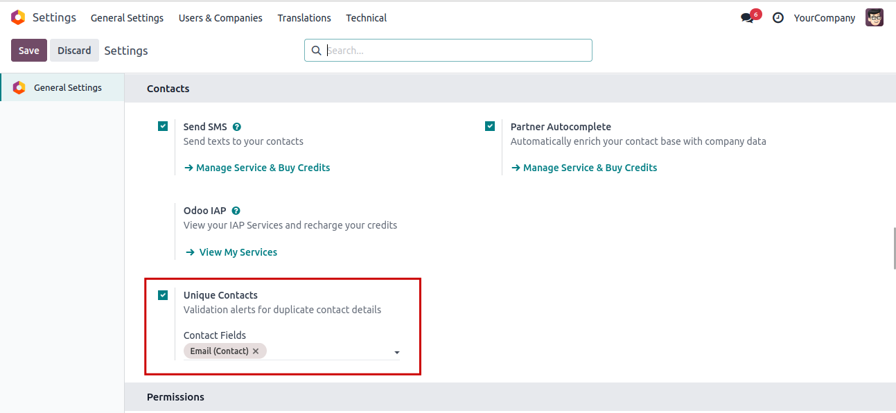 Enable the "Unique Contacts" field. Go to Settings --> Enable "Unique Contacts" field.