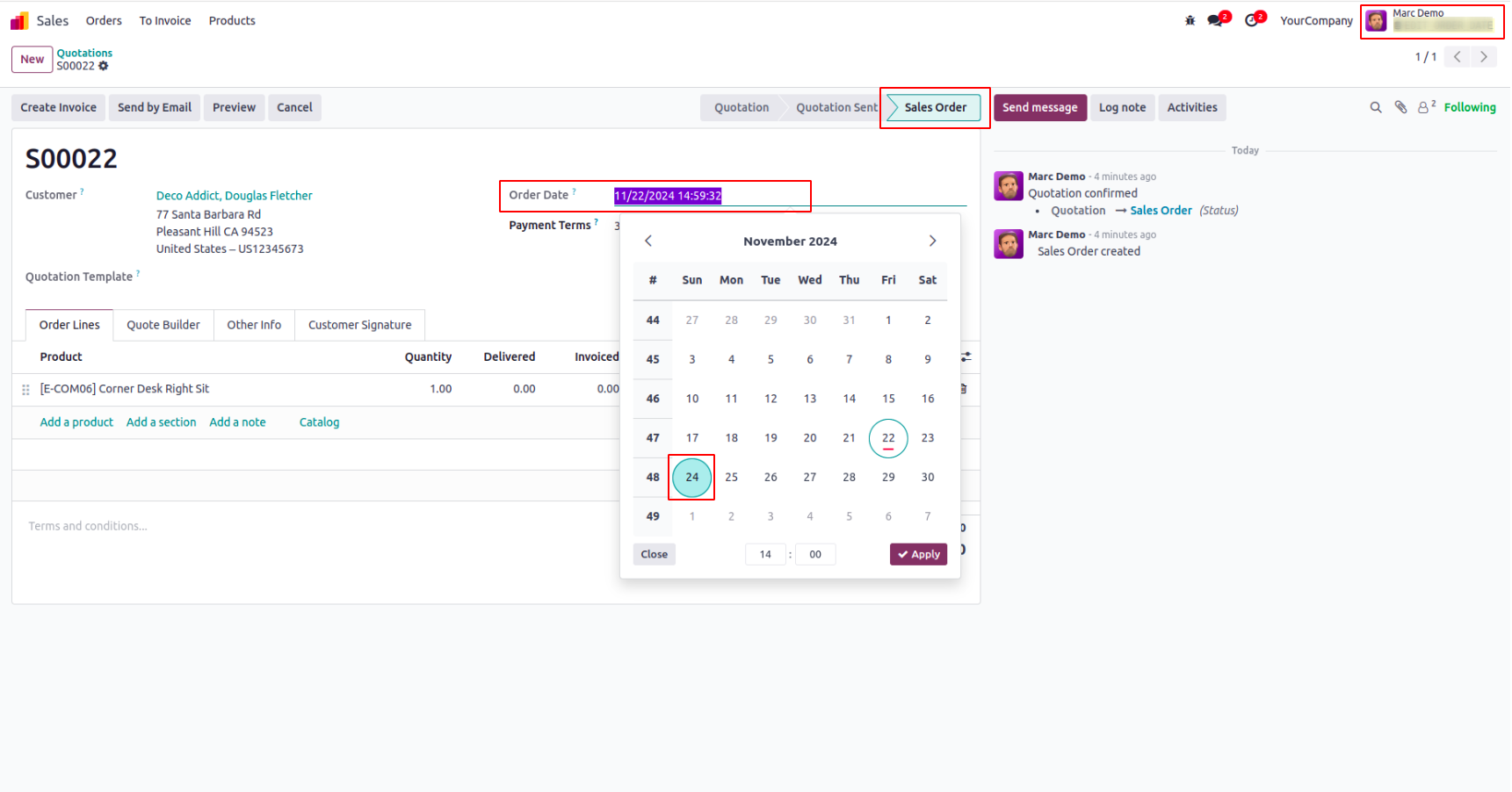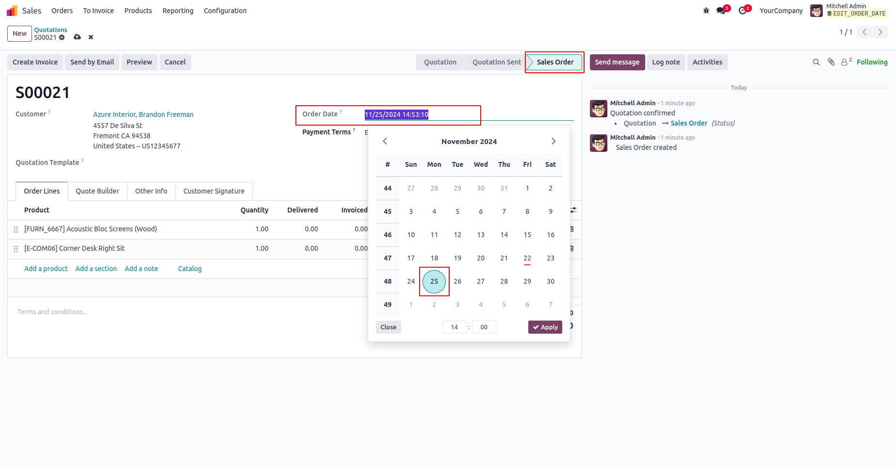 If the current user has no access to edit the order date, a restriction error message will be shown when saving the sales order after editing the order date.