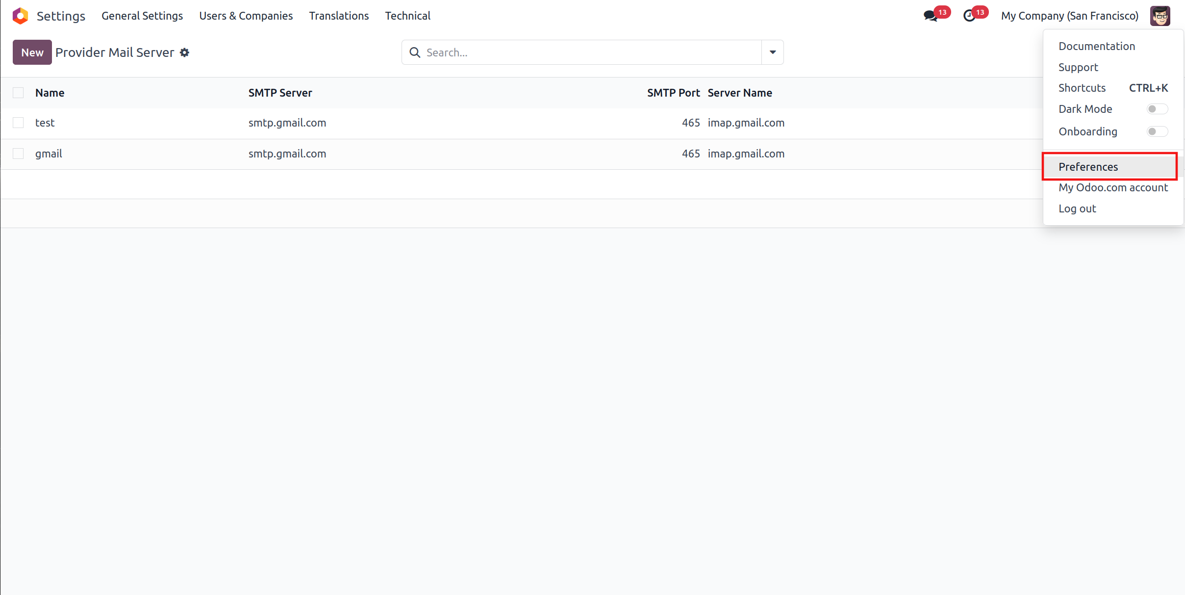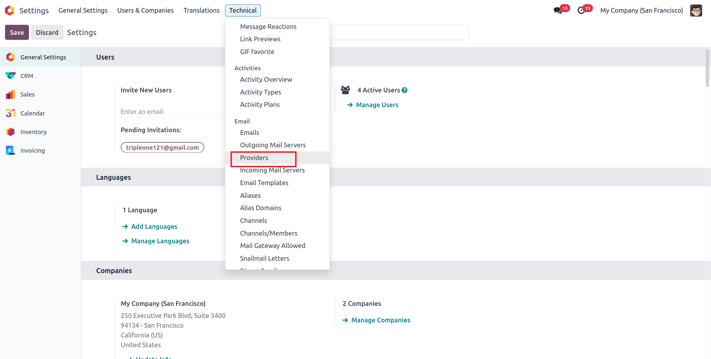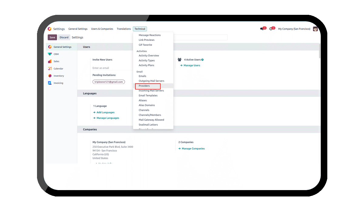 navigate to Settings -> Technical -> Providers.