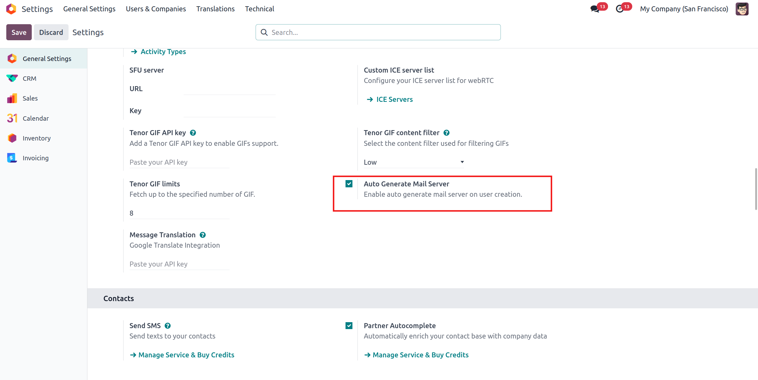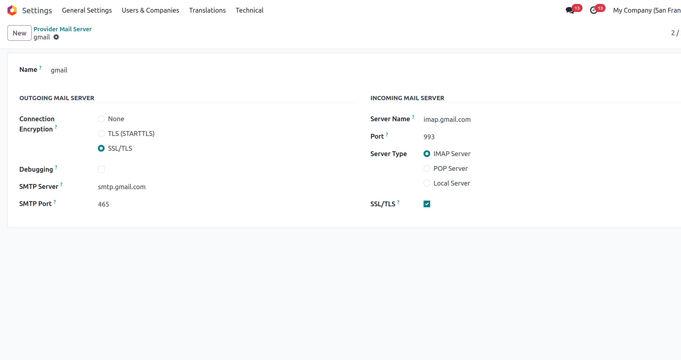 Enables Outgoing and Incoming Mail Servers are automatically configured from Preferences.