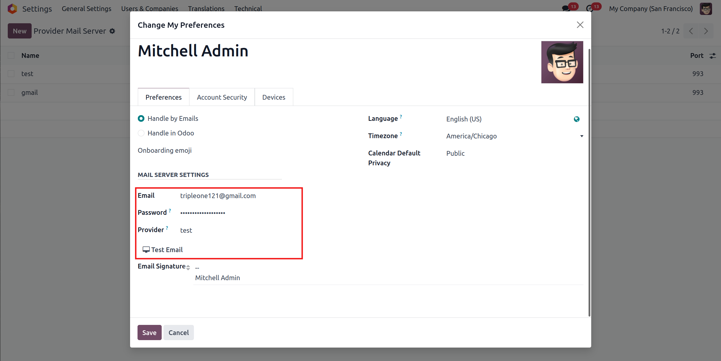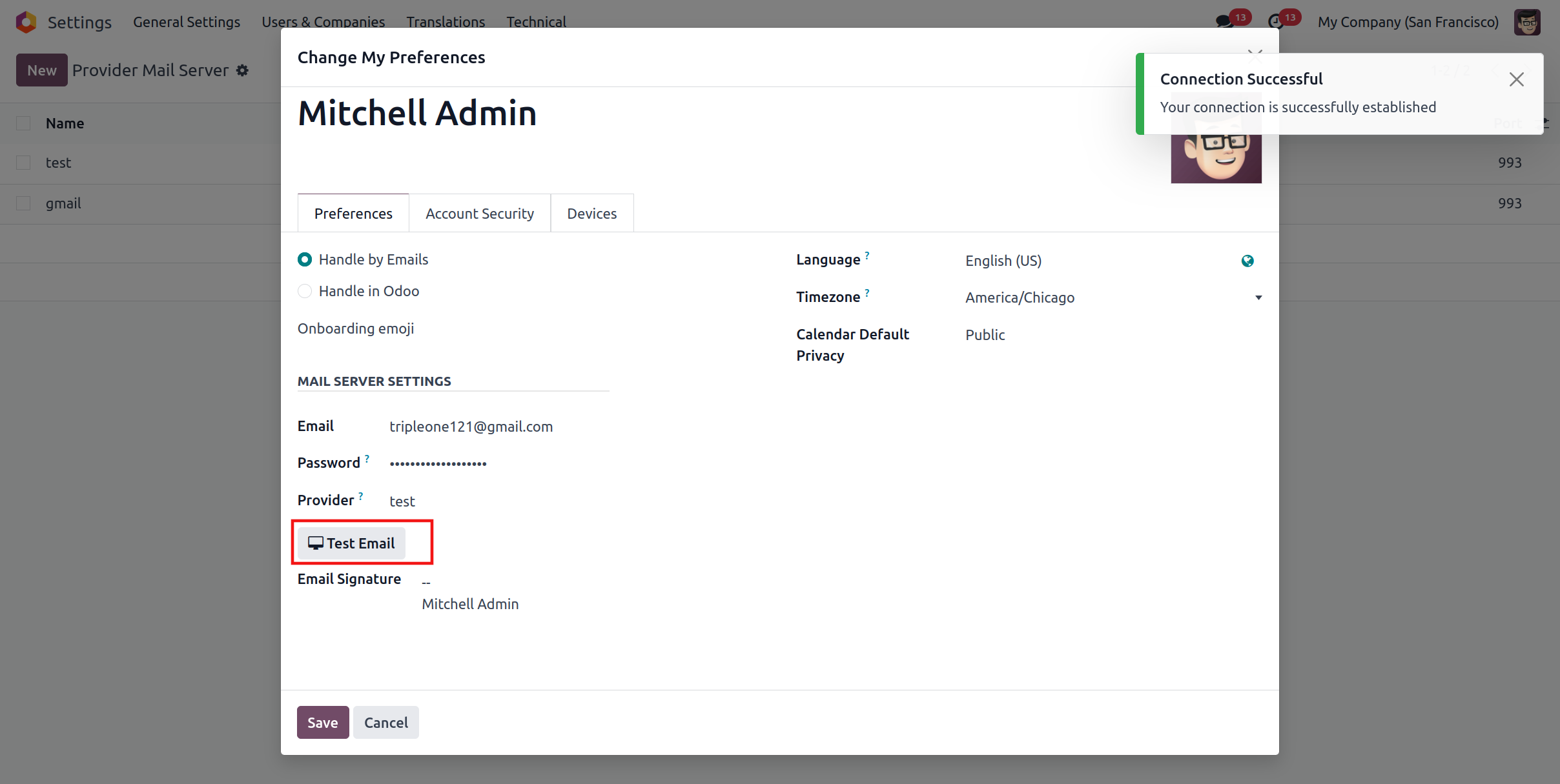 Click on the "Test Email" button to establish both Incoming and Outgoing Mail Servers.