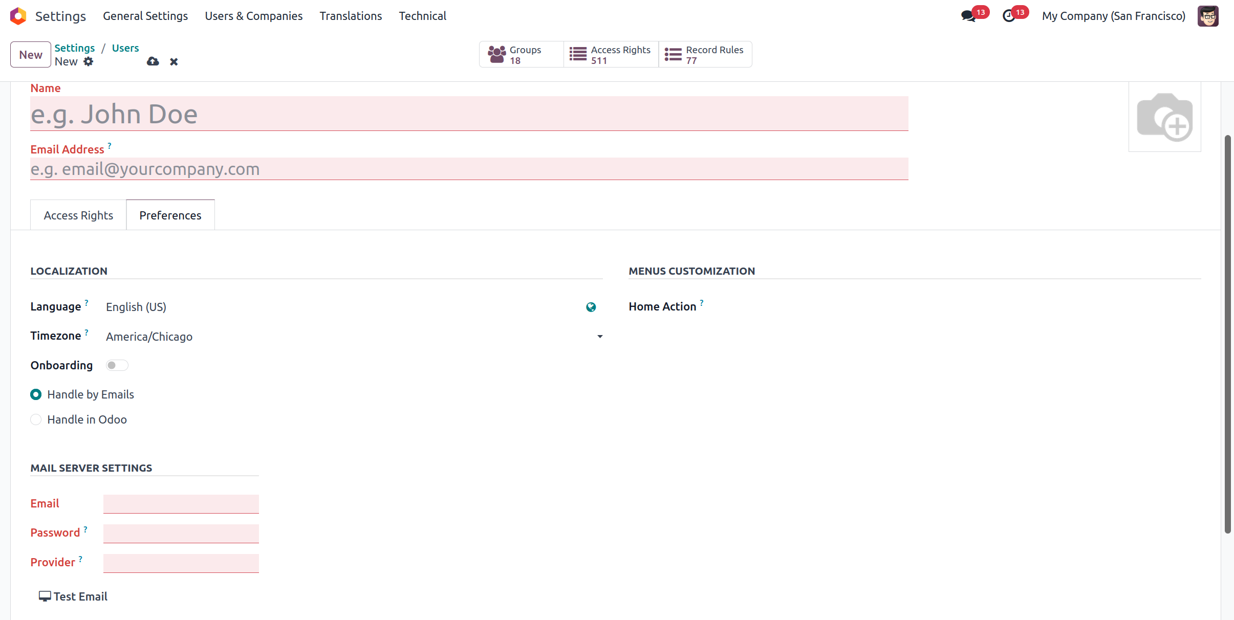 will result in automatic configuration of both Incoming and Outgoing Mail Servers when the User is created.
