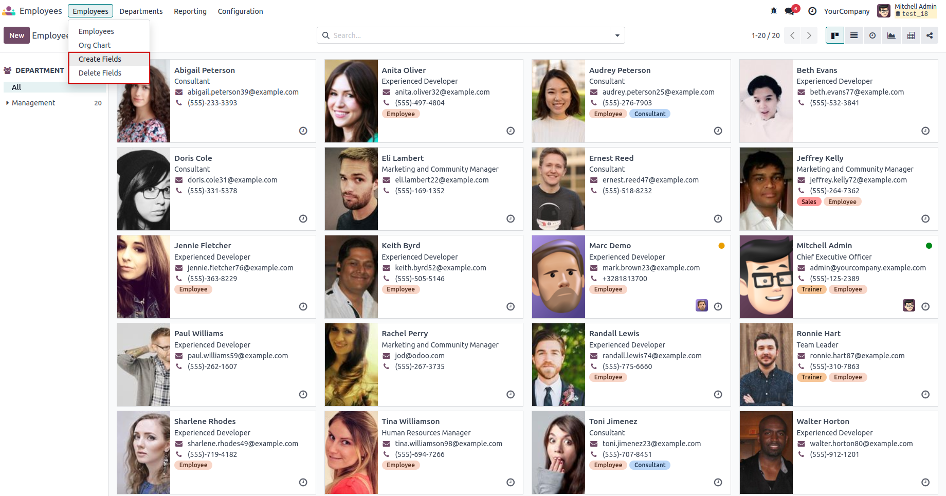 Click 'Create Fields' and 'Delete Fields' menu to create/delete custom fields.