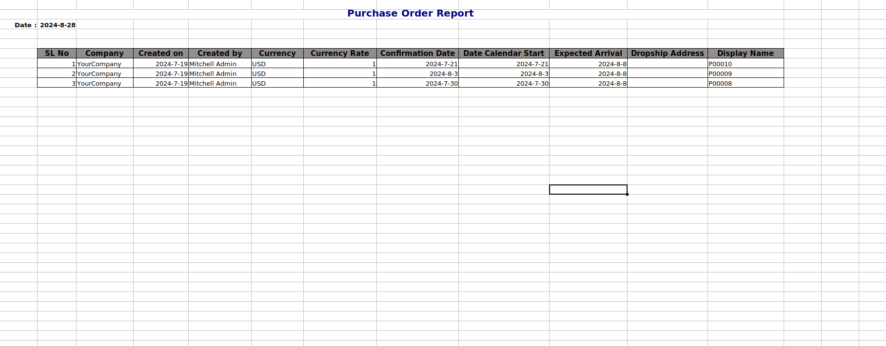 This is the printed xlsx report.