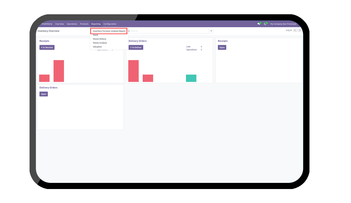 This will help you to generate inventory turnover analysis report in pdf, xlsx, tree view and graph view. .