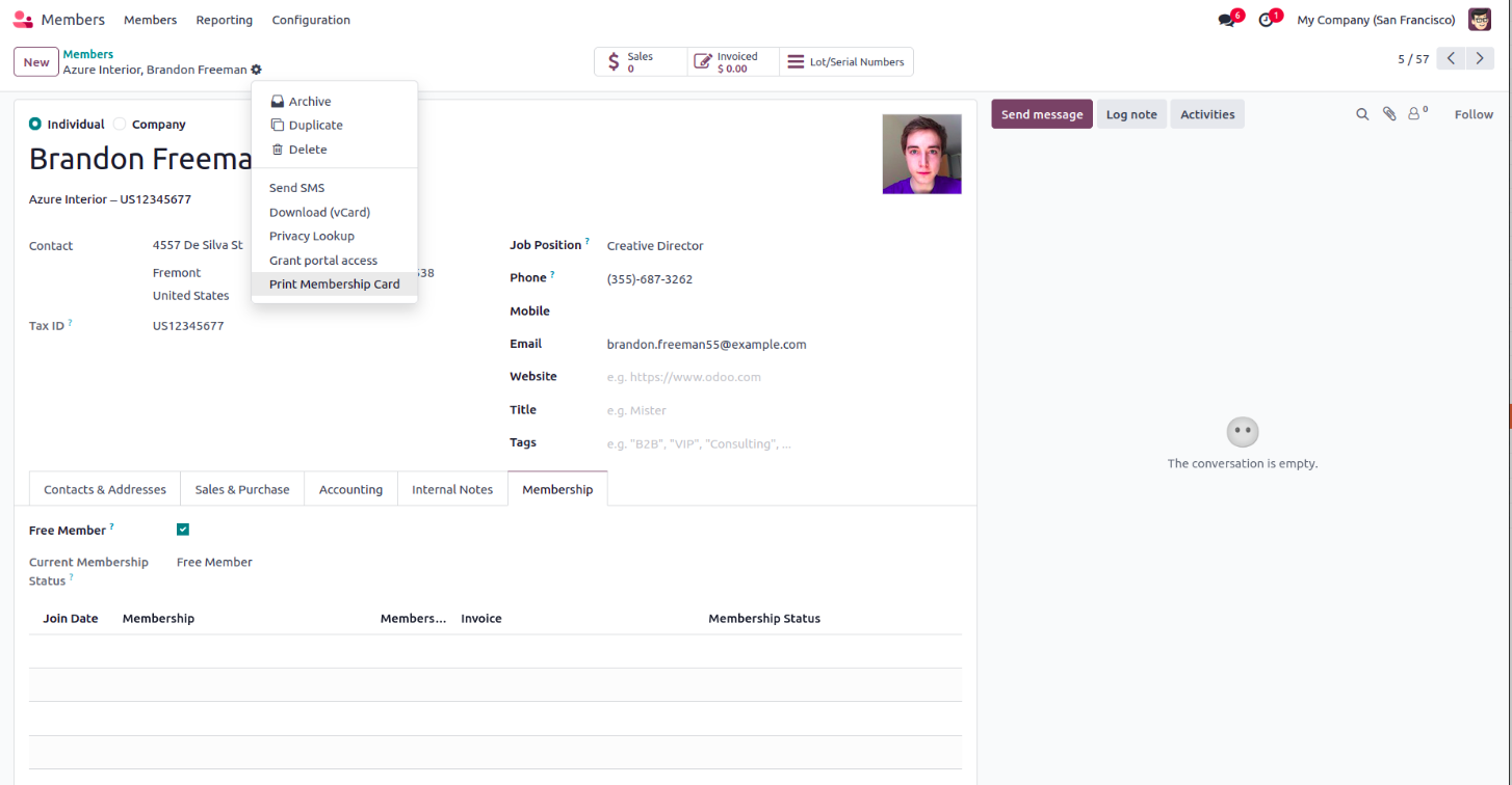 Go to Members Module-> Choose a Member-> Based on the condition Free or Paid this will allow you to print Membership Card.If it is Free. Enable Free member->Click Action ->Print Membership Card.