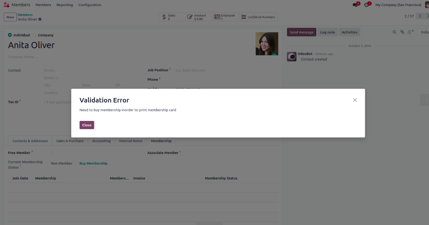 Trying to print paid membership card for validation message will be shown.