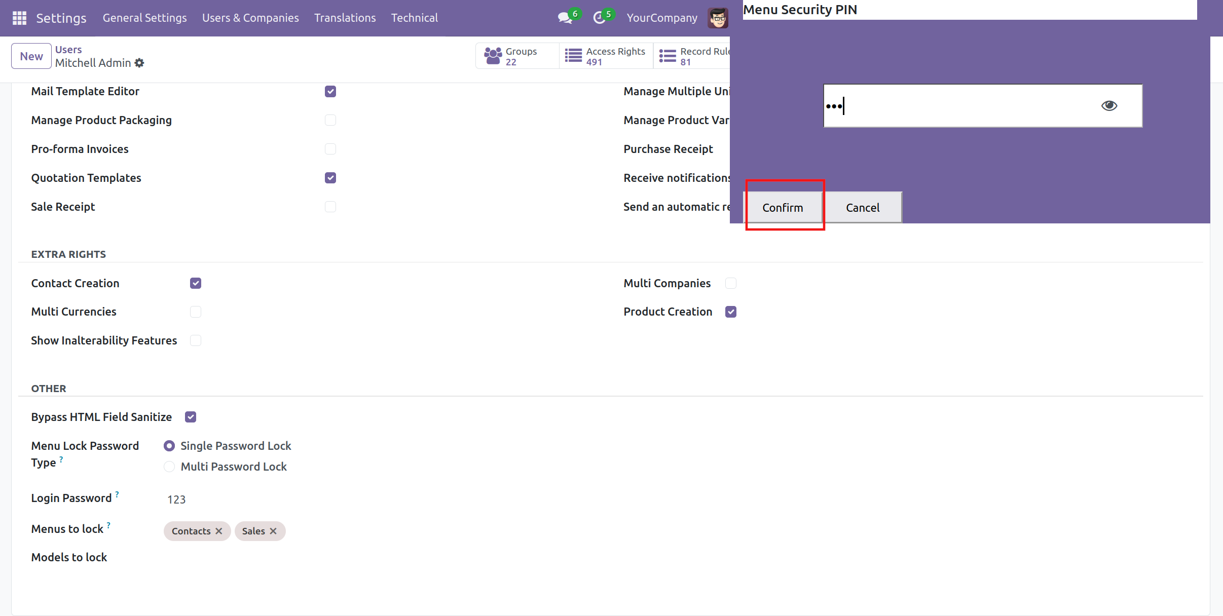 Menu Lock in Odoo