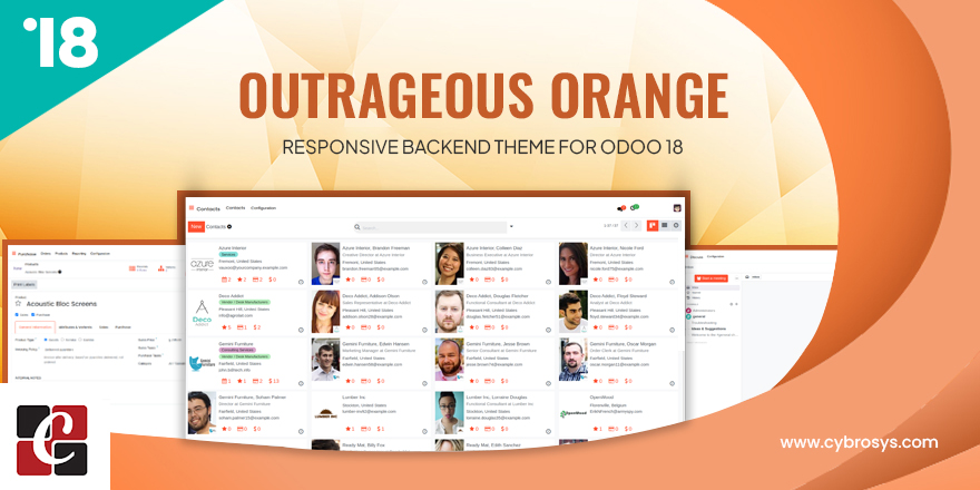 The Outrageous Orange Backend Theme V18 Gives You a Fully Modified View with a Full Screen Display. This is a Minimalist and Elegant Backend Theme for Odoo 18. This Theme Will Change Your Old Experience to a New Experience With Odoo. It is a Perfect Choice for Your Odoo Backend and an Attractive Theme for Your Odoo 18. It will Give You a Clean Layout with a New Color Combination and a Modified Font. It has a Sidebar with New App Icons and Company Logo. This Will Change Your Old Kanban, List, and Form Views to A Fully Modified View.