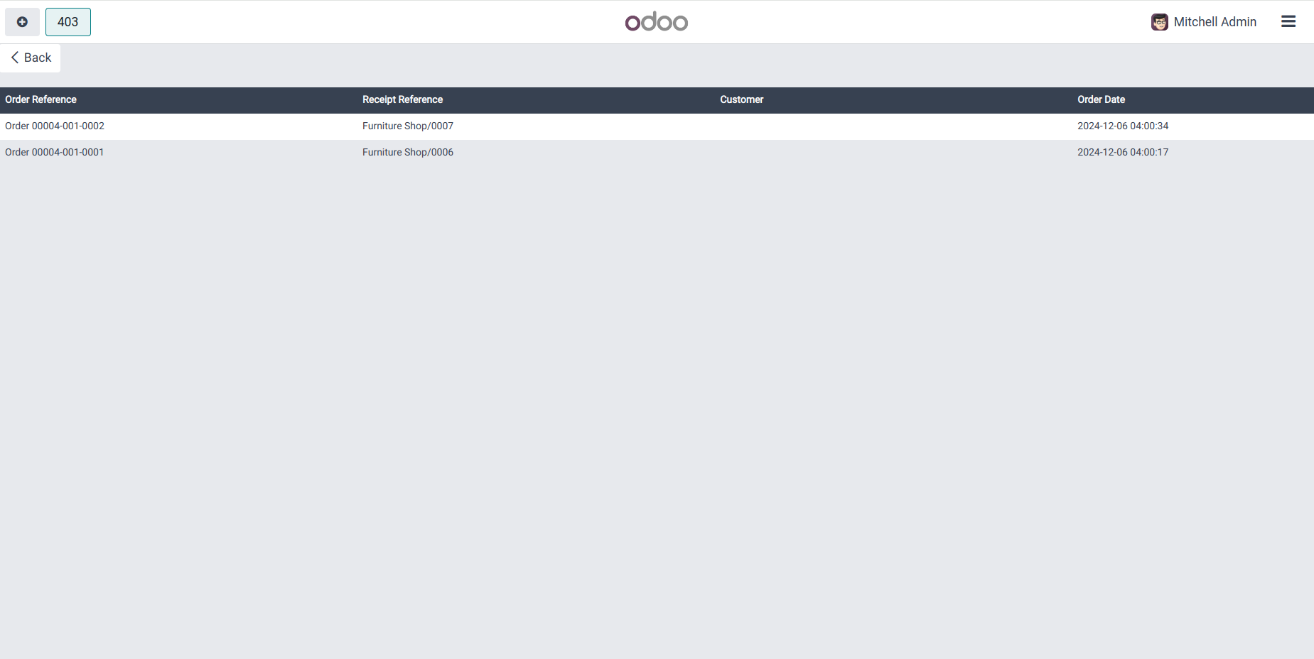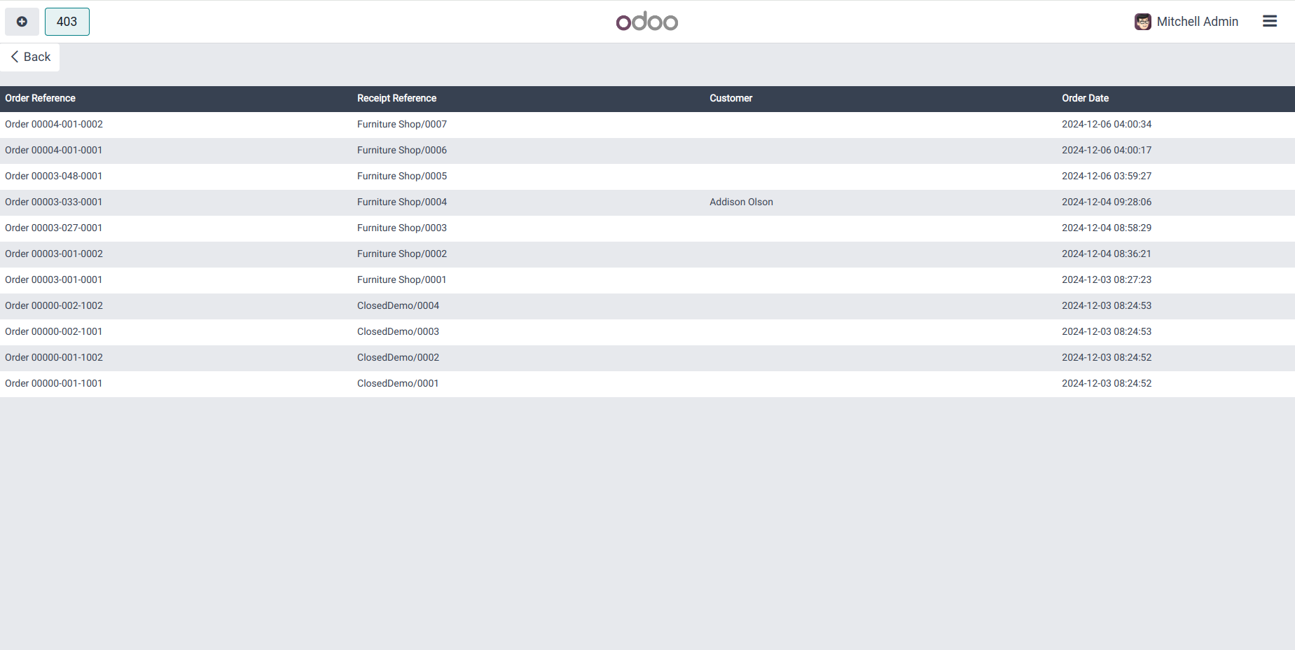 Using this module you will get the detailed view of Order Reference, Receipt Reference, Customer and Order Date.