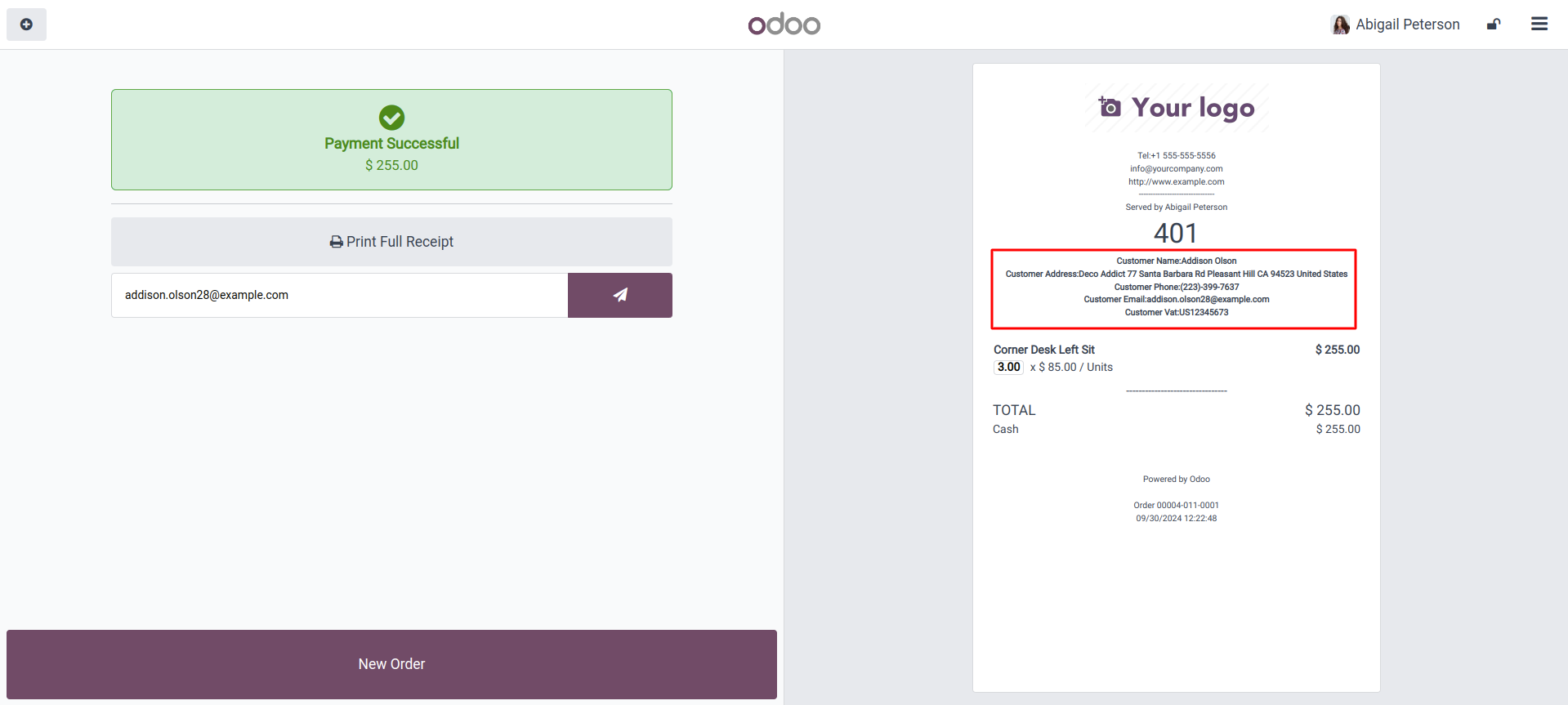 After Enable the condition in the settings You can see the enabled details are shown in the pos receipt.