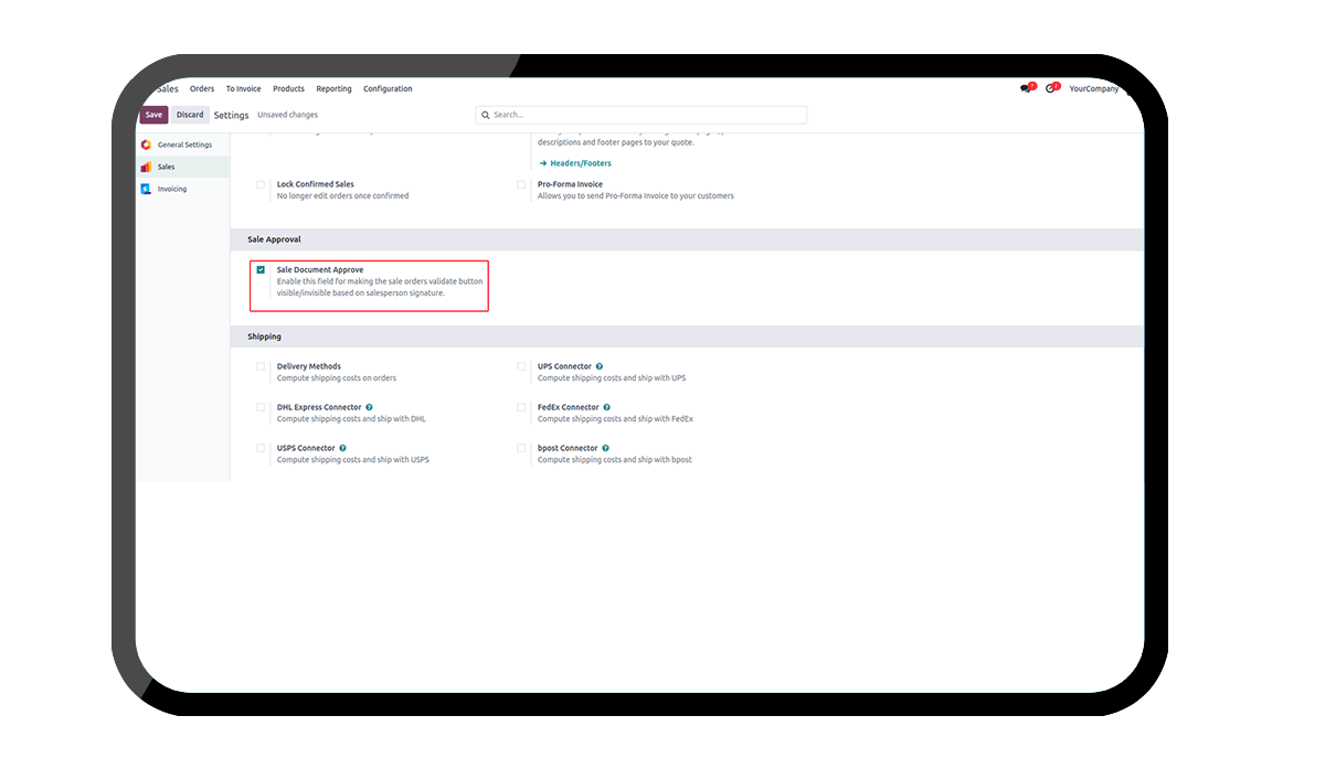Option for making the Confirm button visible/invisible from settings and add signature by salesperson.