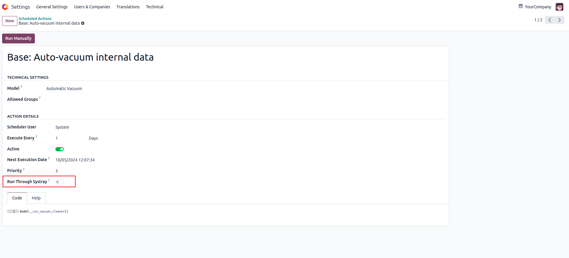 Enable the boolean field to run scheduled actions through systray, Only enabled scheduled action are shown on the systray.