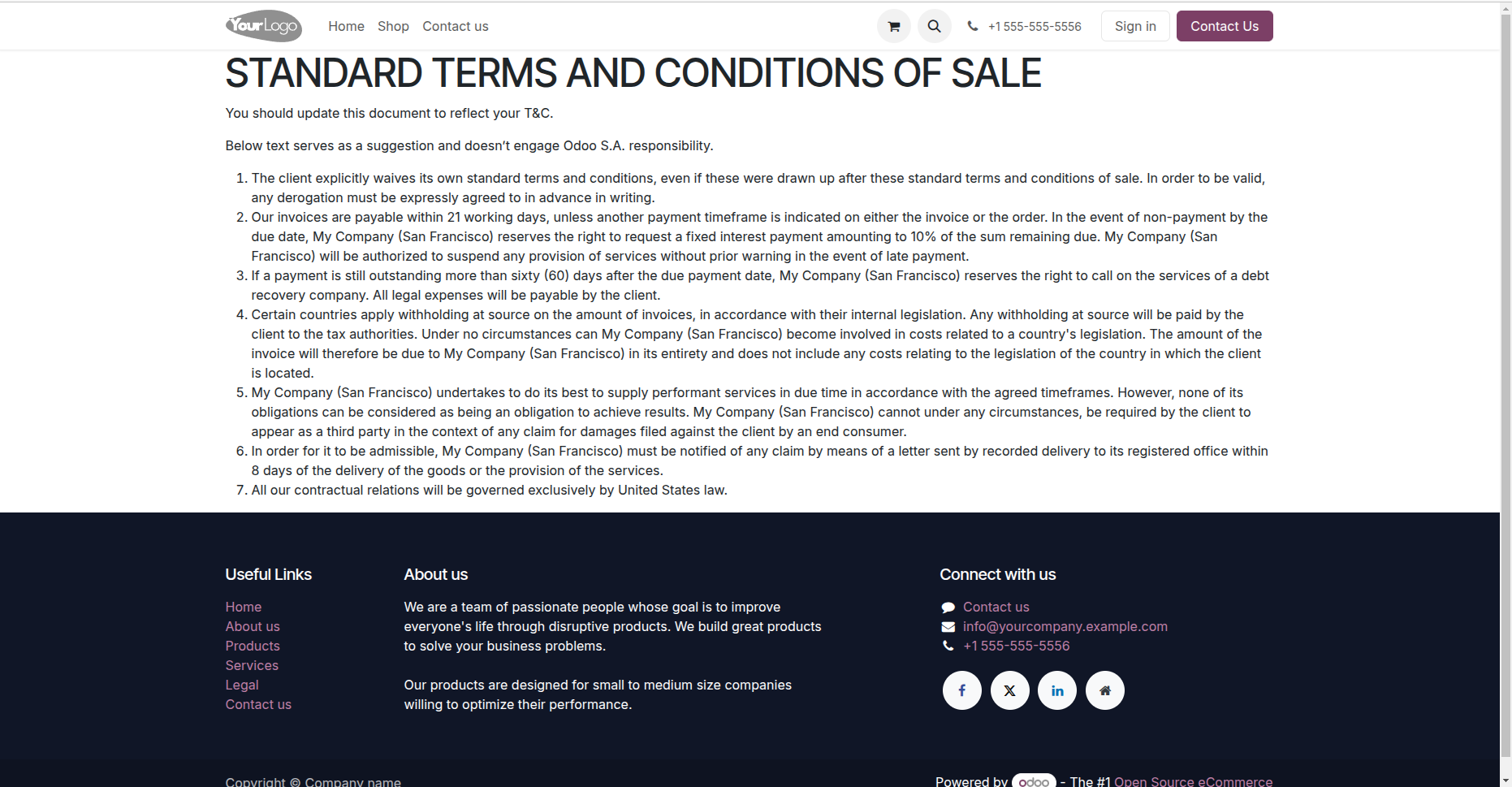 Clicking "Terms and Conditions" opens a separate page with the terms content.