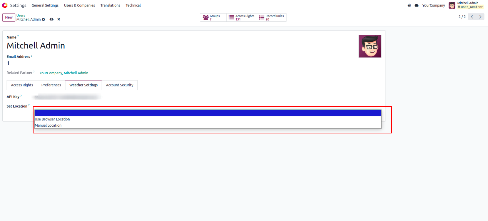 The User Weather Notification app integrates real-time weather updates and notifications into the Odoo platform. It allows users to monitor weather conditions for selected locations directly from their Odoo interface.