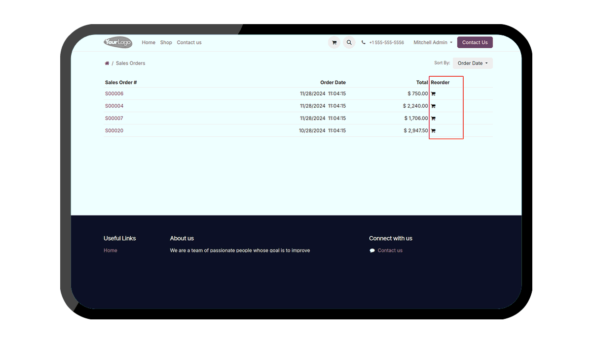 Repeat a sale order quickly from sale order history(my/orders) of Customer.