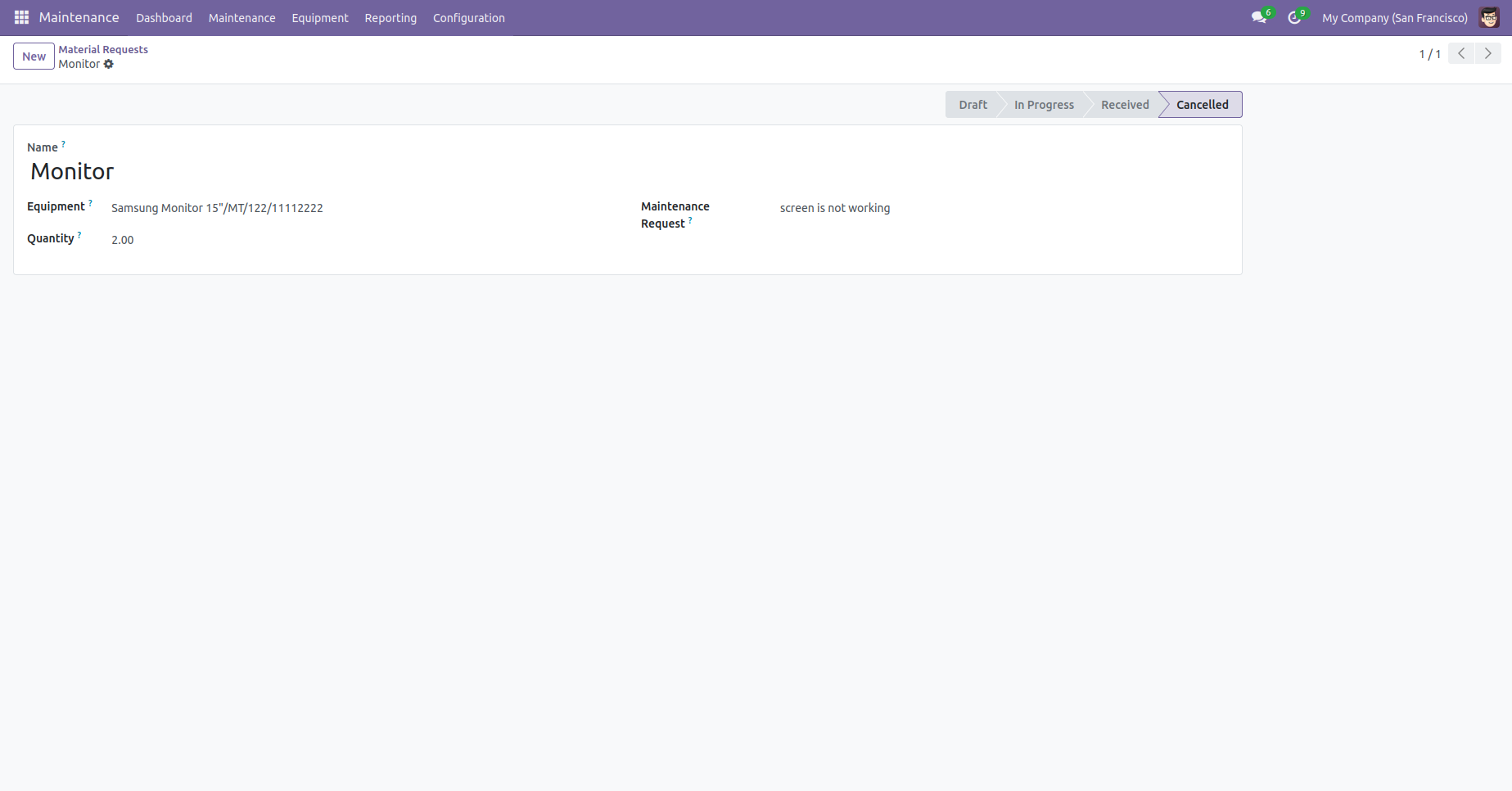 It enables you to create material requests for equipment linked to the maintenance requests.