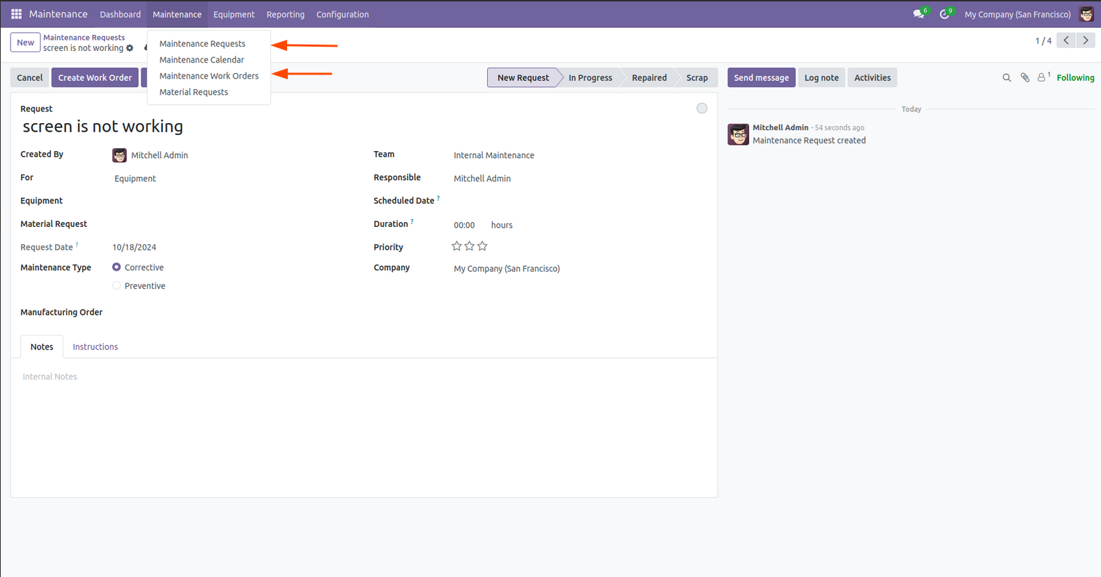 Maintenance Work Orders in Odoo 18 Community & Enterprise Edition.