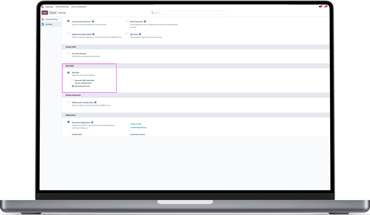 Create VAT invoice report Manually Generate or Generate QR Code when invoice validate/post.