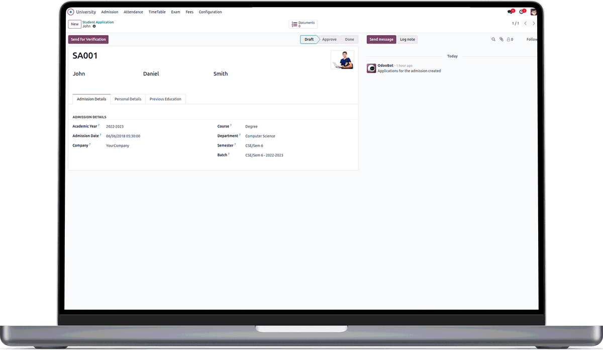 Maintains a strong database on student details like their gender, sex, age, blood group etc. It gives an overview of the student and his personal attributes.
