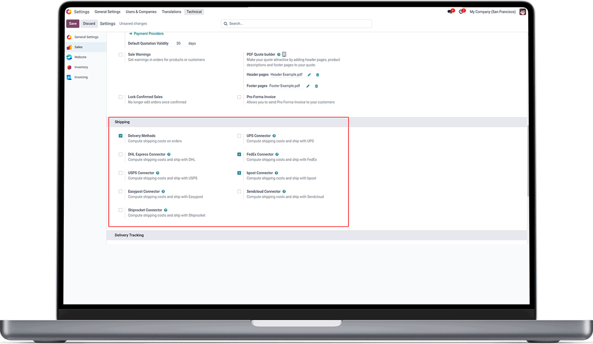 If you navigate to Sales -> Configuration -> Setting, you will find a field where you can input the API Key for Delivery Tracking. This key is used to update the Delivery Status.