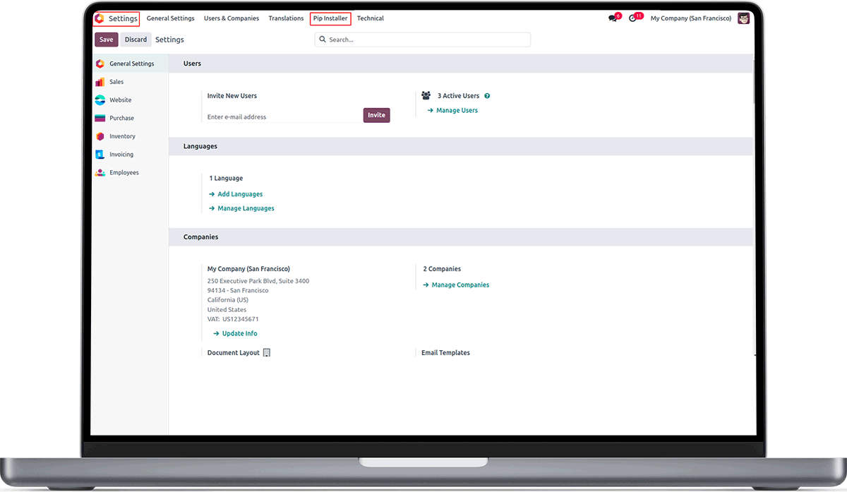 Users can execute all terminal Pip Commands from the Odoo interface.