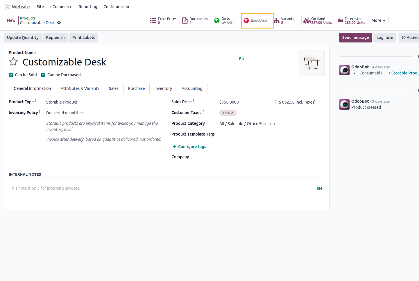 This Module Helps to Publish/Unpublish Product from Website Shop Without Redirecting to Website.