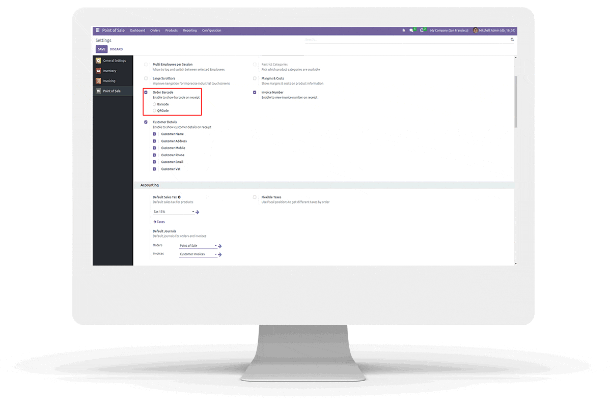 Go to Point of Sale -> Configuration ->settings -> We can enable the checkbox for QR code and select QR code option