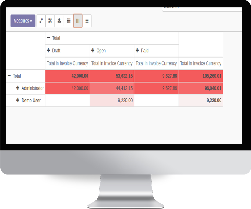 Heat map can be used to color the entries in the pivot view. The coloring will be in a format where the maximum value will be shown in a dark color and next largest value will be in a lighter color than the maximum one. This applies for all the values in the table.