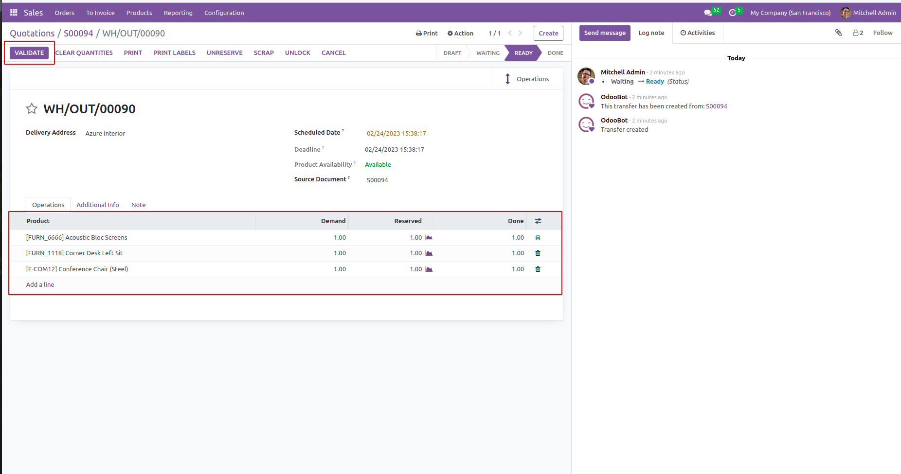 User can see invoice is validated automatically and sent message is linked with chatter which is sent to customer.