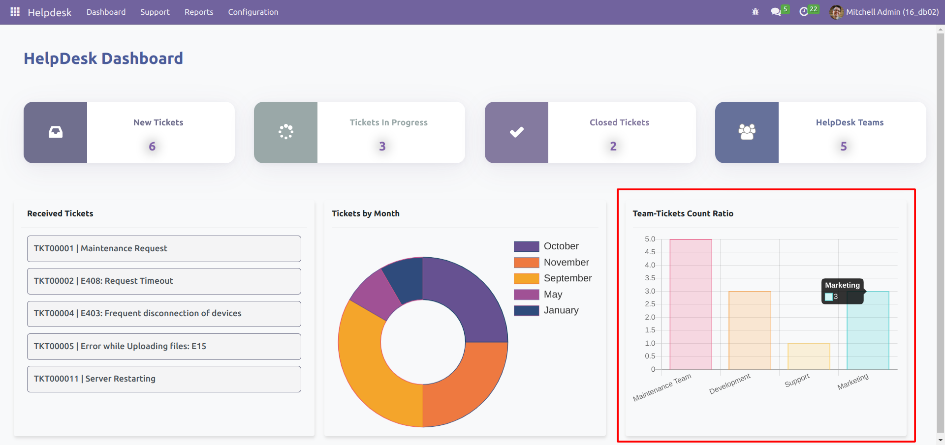 Detailed Dashboard View for Helpdesk Management Module