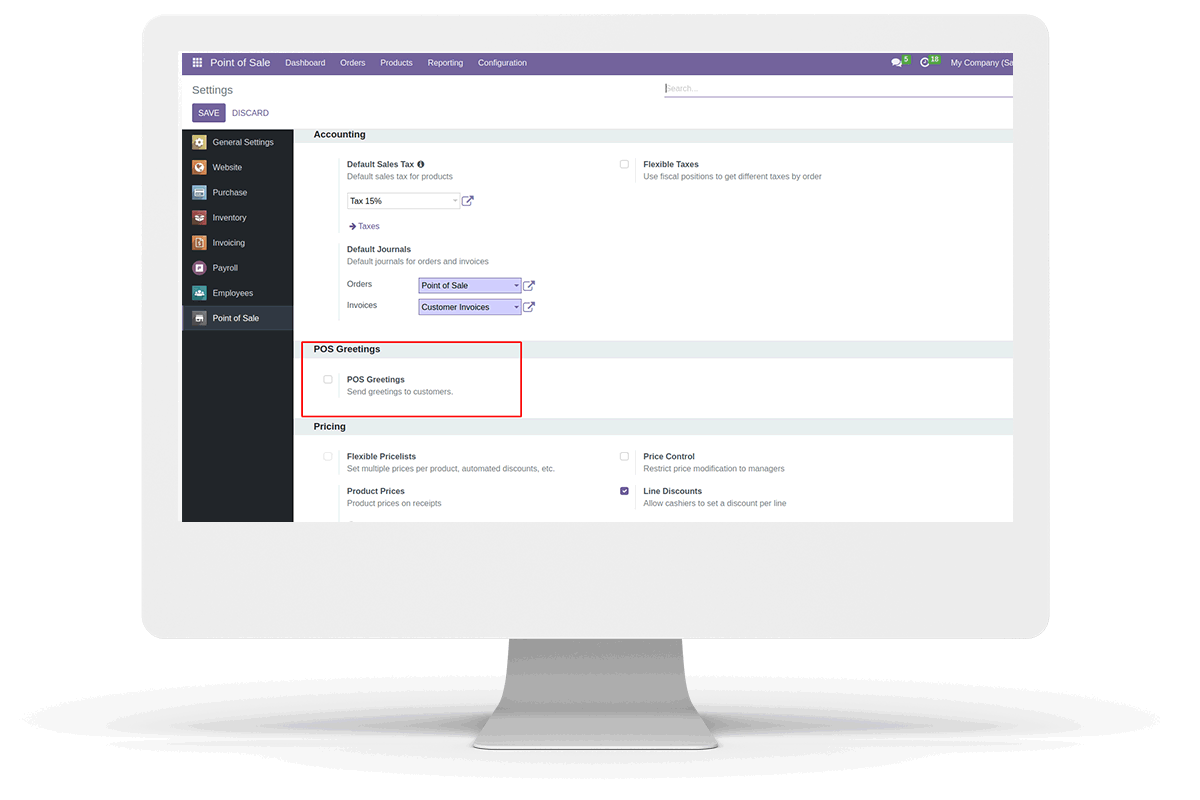 Enable the POS greeting then you can see another fields to fill. If you don't have Twilio account create one and specify the Auth token,Account SID, Twilio number and the body of the greeting.