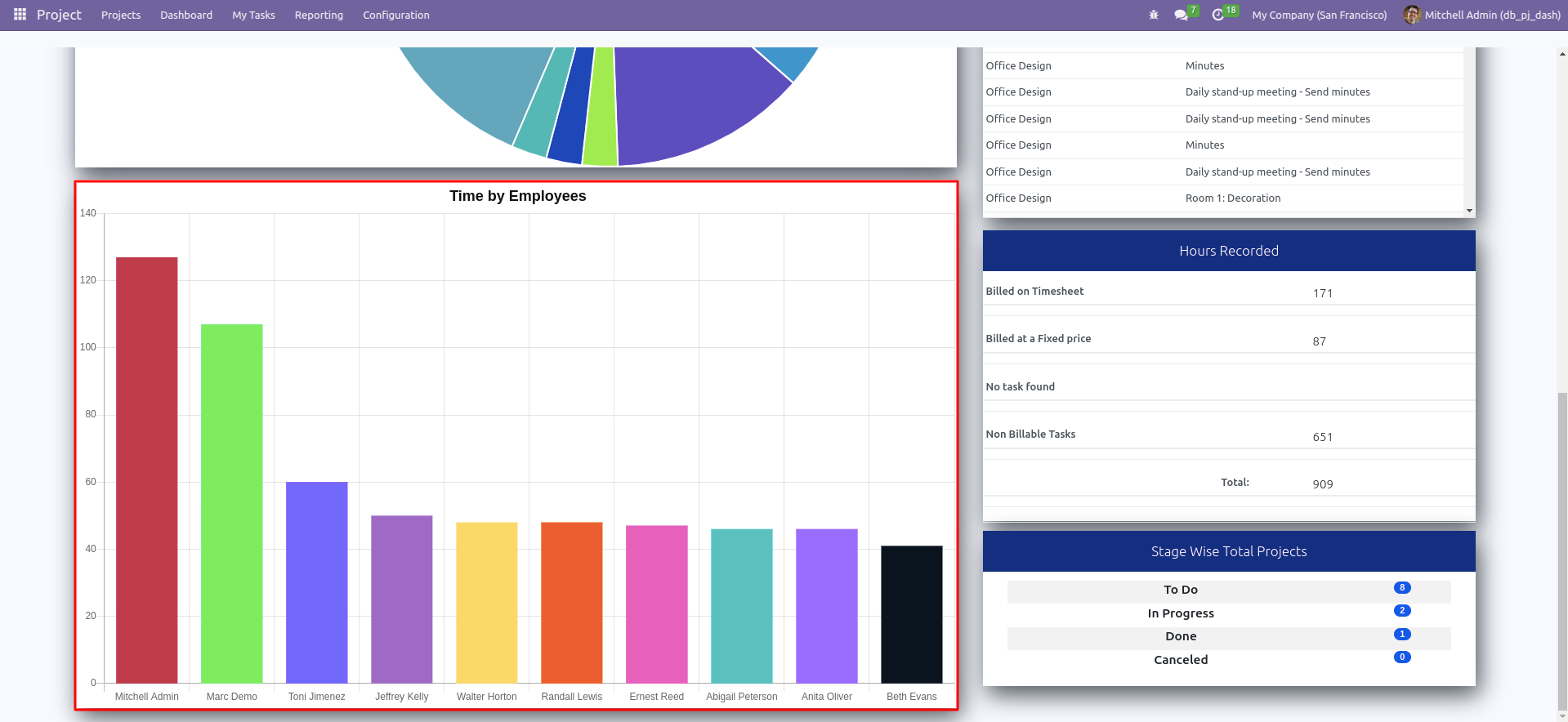 Project dashboard have different types of graphs that will give you complete analyse of the project module.