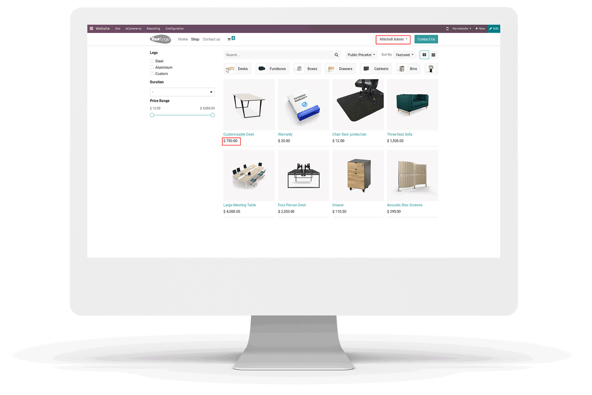 Login user can see Product price, Add to cart and Quantity buttons in Product page.